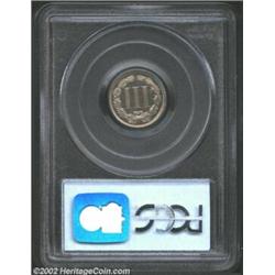 1865 3CN PR65 PCGS. Repunched Date. Breen 2-B. The first of two Gem quality representatives of this.