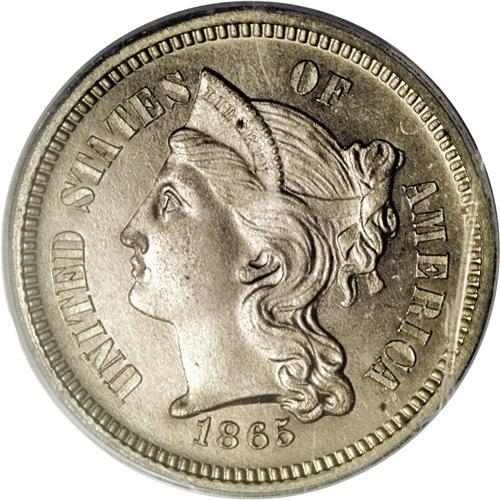 1865 3CN Three Cent Nickel, Judd-410, Pollock-481, Low