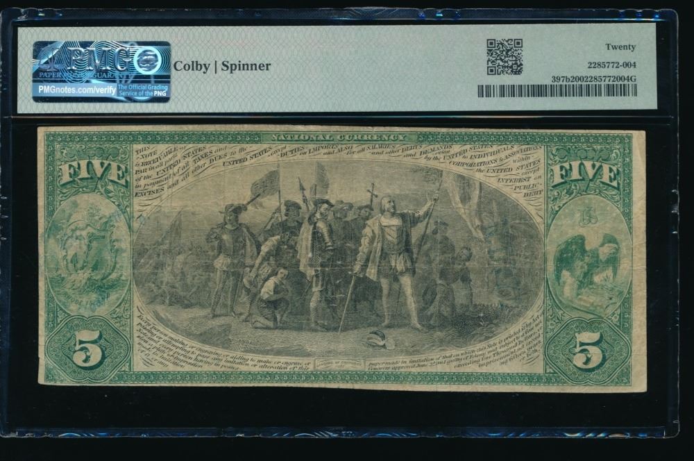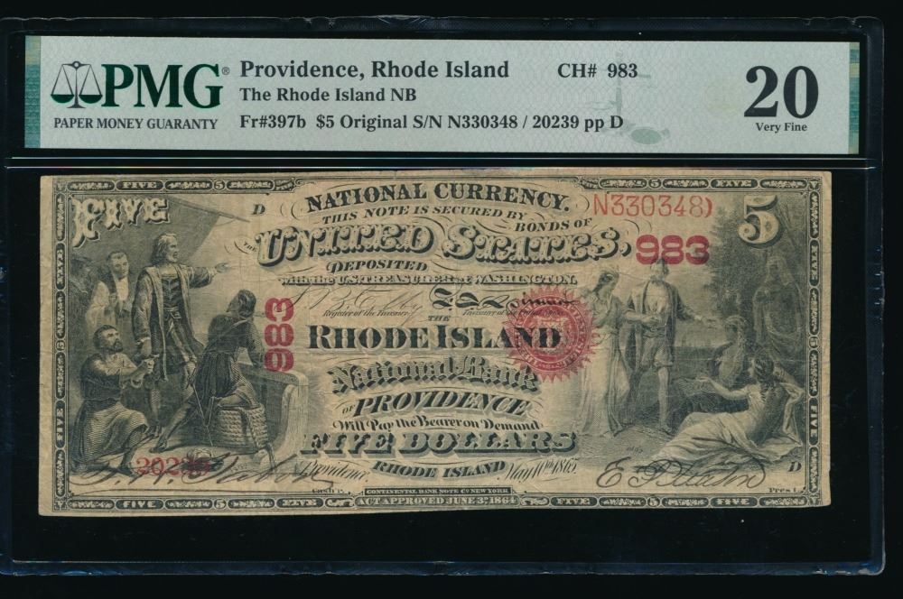 One 1865 $5 Providence RI National PMG 20.