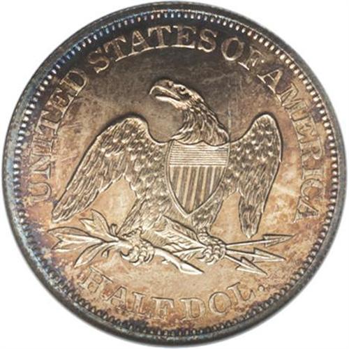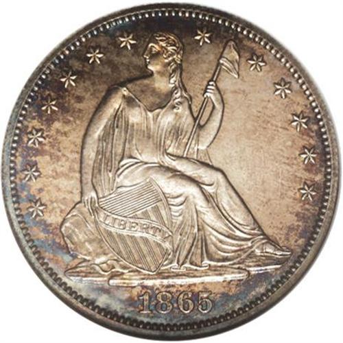 1865 50C PR65 NGC. Final year of the No Motto type, an