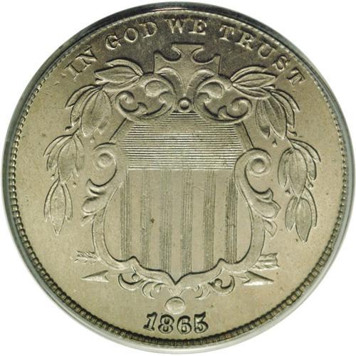 "1865 5C Shield Nickel, Judd-416, Polloc"