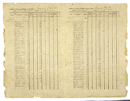 Partly-printed D.S. 4pp. folio, Gravel Hill, 1854, a lengthy account of mail received at the post office at Gravel Hill, Virginia, from Feb. 14, 1865 through March 12, 1865. With over 100 entries from many of the Confederate States, neatly penned on the usual dark tan Confederate stock. Chipping to right and bottom edges, but overall very good condition.