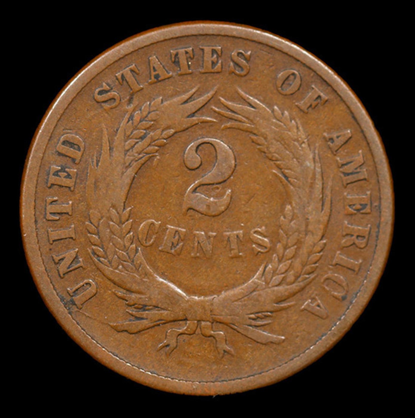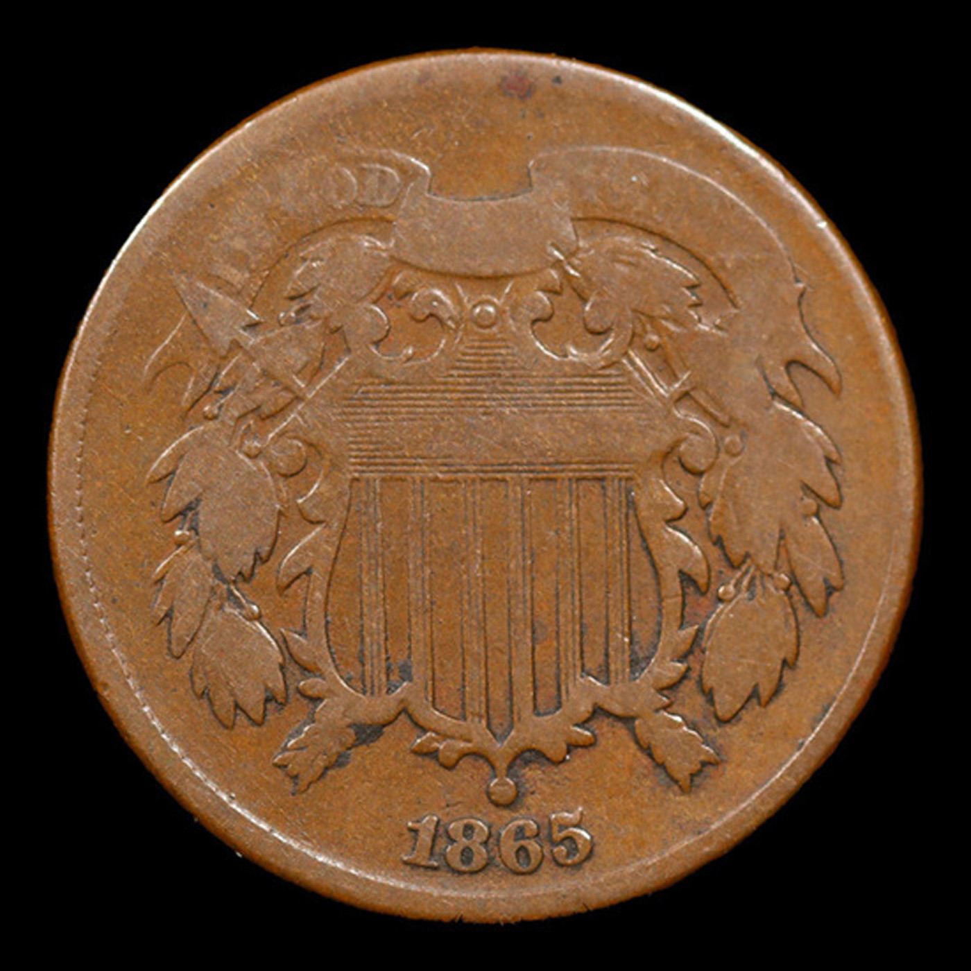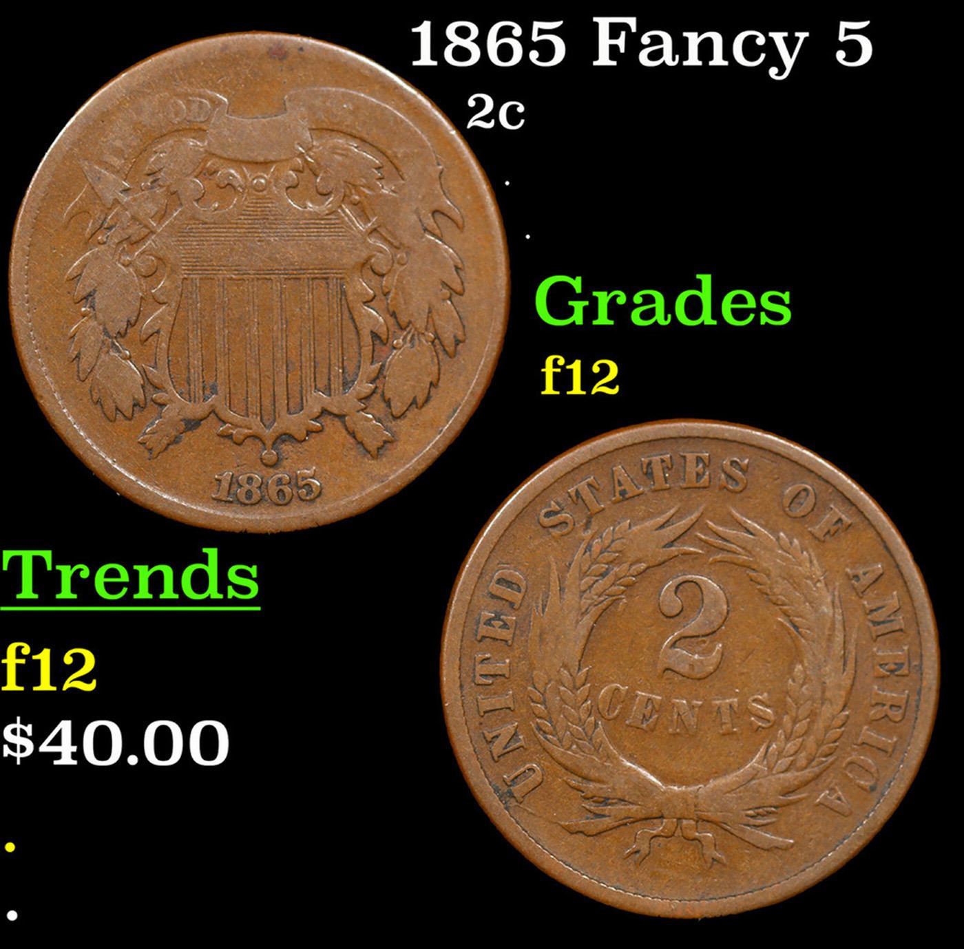 1865 Fancy 5 Two Cent Piece 2c Grades f, fine.