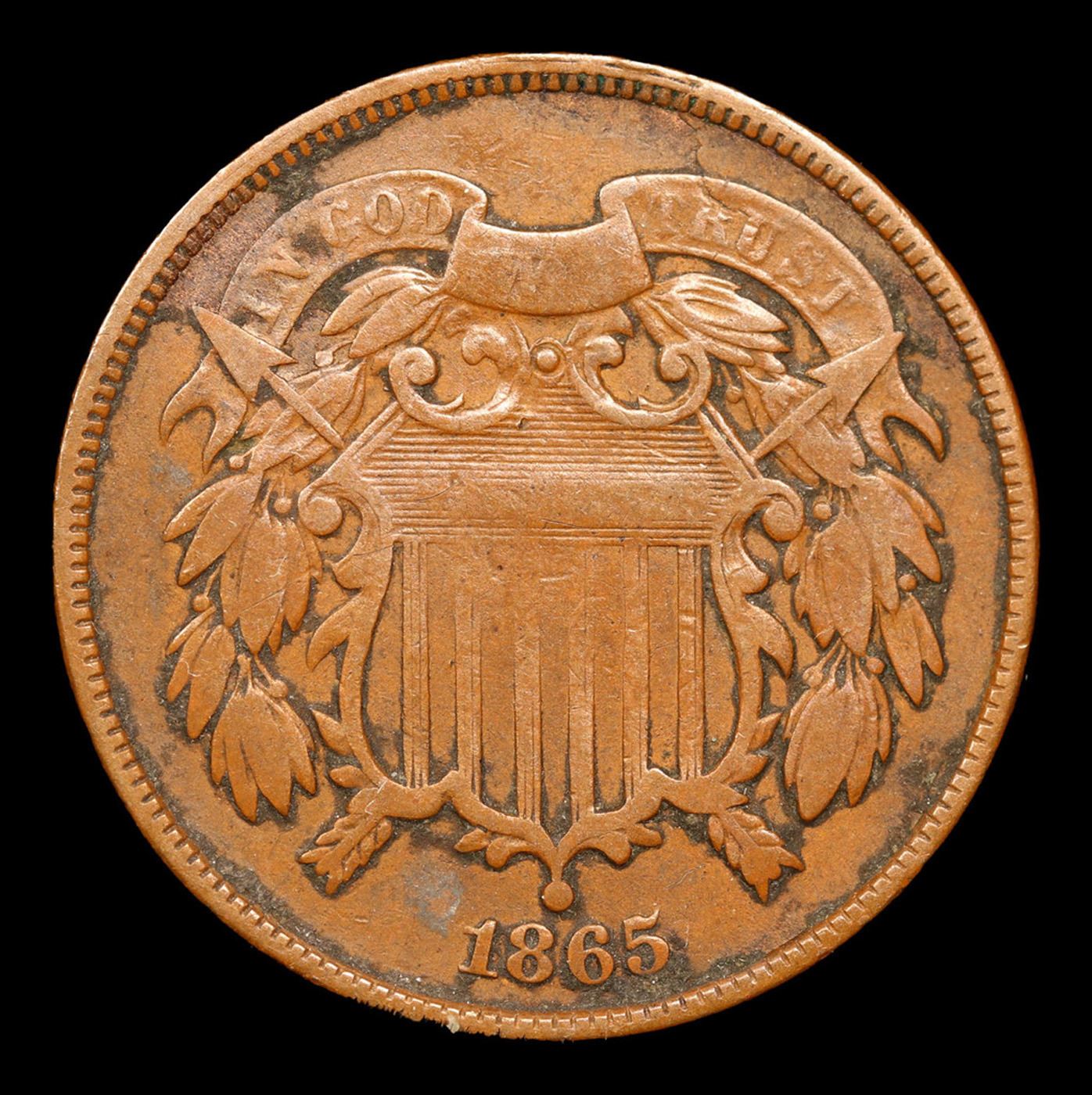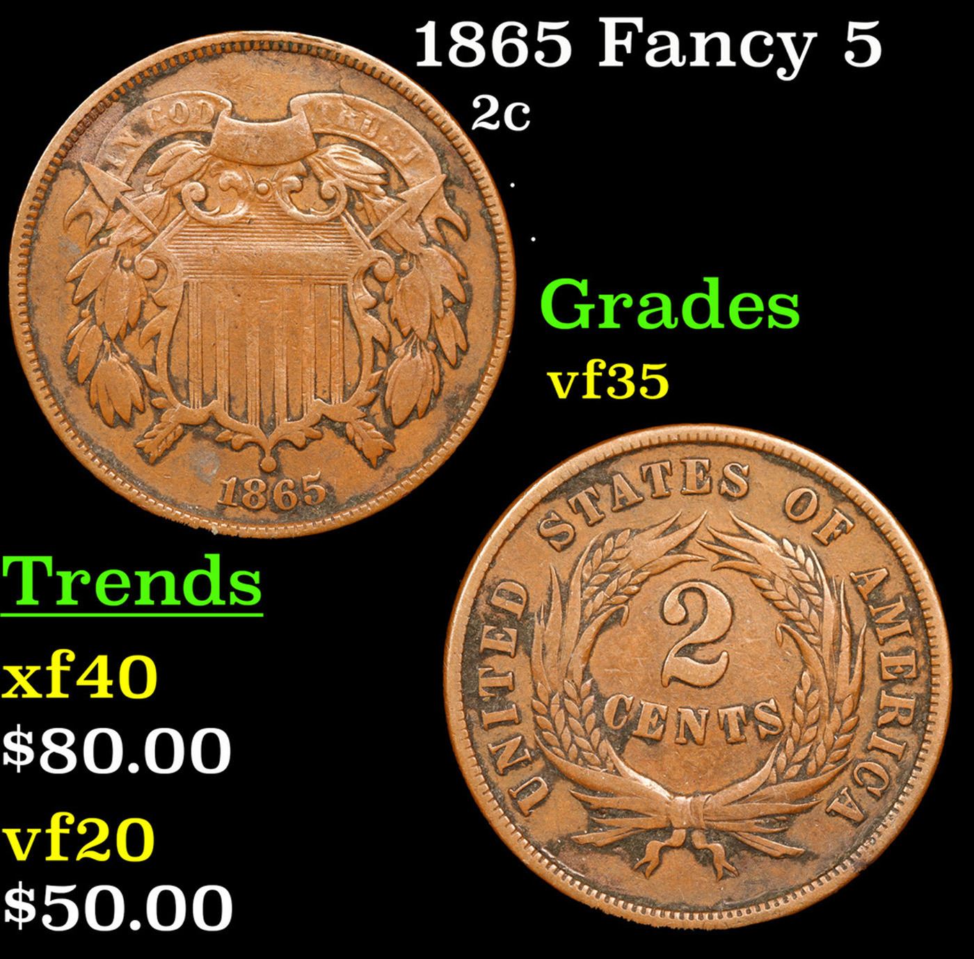 1865 Fancy 5 Two Cent Piece 2c Grades vf++.