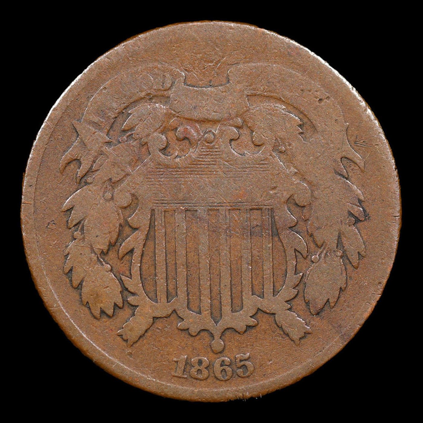 1865 Fancy 5 Two Cent Piece 2c Grades vg, very good.