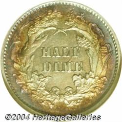 <table><tr><td><table><tr><td>1865 H10C MS67 NGC. A lovely, original specimen of this extremely low mintage (13,000 pieces) issue. Rich sunset-gold, magenta, and cobalt-blue toning deepen toward the borders. Numerous die striations (as struck) are seen particularly in the obverse field. Well struck, save for a small area of localized weakness on the wreath at the upper left portion of the reverse, about 30 degrees of clockwise die rotation is also noted. A wonderful example that is currently unsurpassed in grade at either service. Population: 7 in 67, 0 finer (3/04). <BR><BR><B>Important notice:</B> Heritage usually auctions material at the rate of 200-250 lots per hour. On some occasions eBay Live bid software or the Internet may not be able to keep up with the pace of the auction. We recommend placing a realistic absentee bid now as insurance to avoid disappointment. Occasionally the auctioneer may eliminate or reject an eBay Live bid, and the auctioneer may also reopen a lot after the close of the eBay live bidding (usually because we missed an audience bid), and may reject your bid even if it shows you as the winning bidder. By bidding via eBay Live, you agree that Heritage may award the lot to another bidder at its sole discretion under the circumstances described above or any other reasonable circumstances. Since eBay bids are not shown to us until we open the lot on the floor, we treat those bids just like floor bids. In most cases the floor responds before the eBay bid is presented to us, due to Internet lag time, so for consistency we have made it a policy that floor bids are always considered first over tie eBay live bids. Also please note that all Heritage lots purchased through eBay Live carry a 20% Buyer's Premium. Please make sure you read the Terms and Conditions before you bid. <BR><BR><B>IMPORTANT ANNOUNCEMENT ABOUT RESERVES:</B> Heritage now divulges all reserves on its web site 7 days before every auction. If you want to know whether the reserve on this lot has been met, and if not, what the reserve amount is, please visit this lot page on the HeritageCoin.com web site, or email: bid@HeritageGalleries.com </span></font></td></tr></table></td></tr></table>