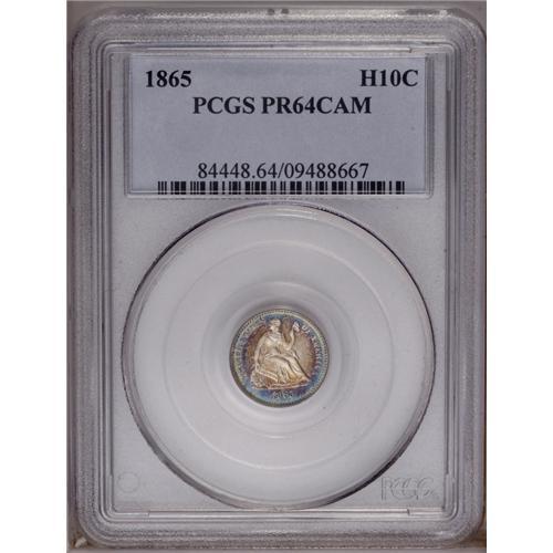 1865 H10C PR64 Cameo PCGS. This near Gem displays irid 1865[H10C] PR64 Cameo PCGS.