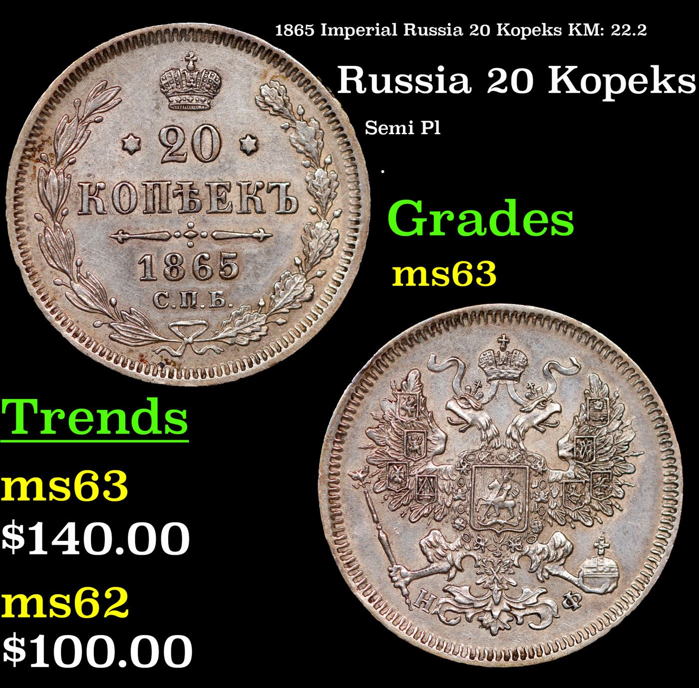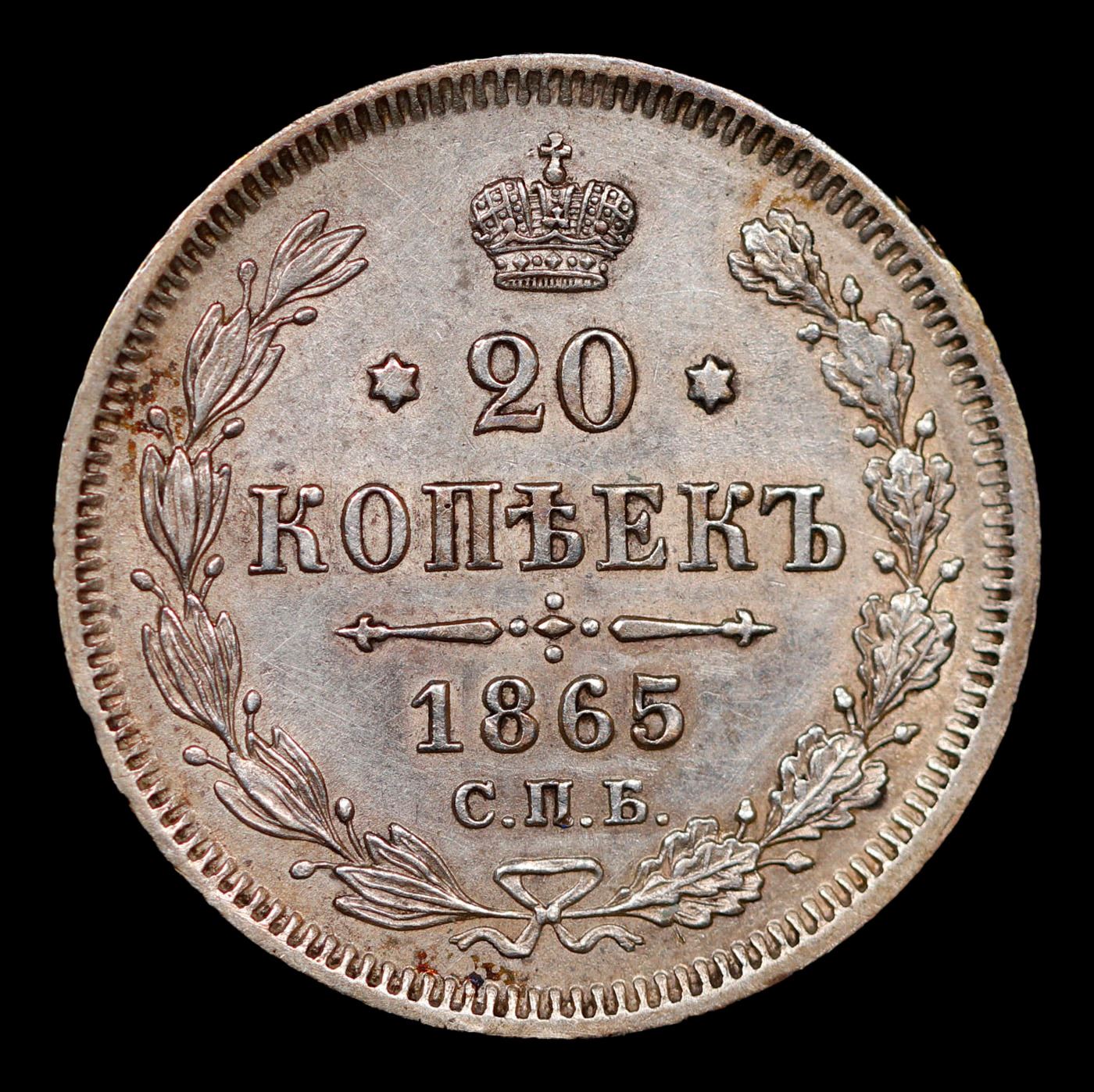 1865 Imperial Russia 20 Kopeks KM: 22.2 Grades Select Unc.