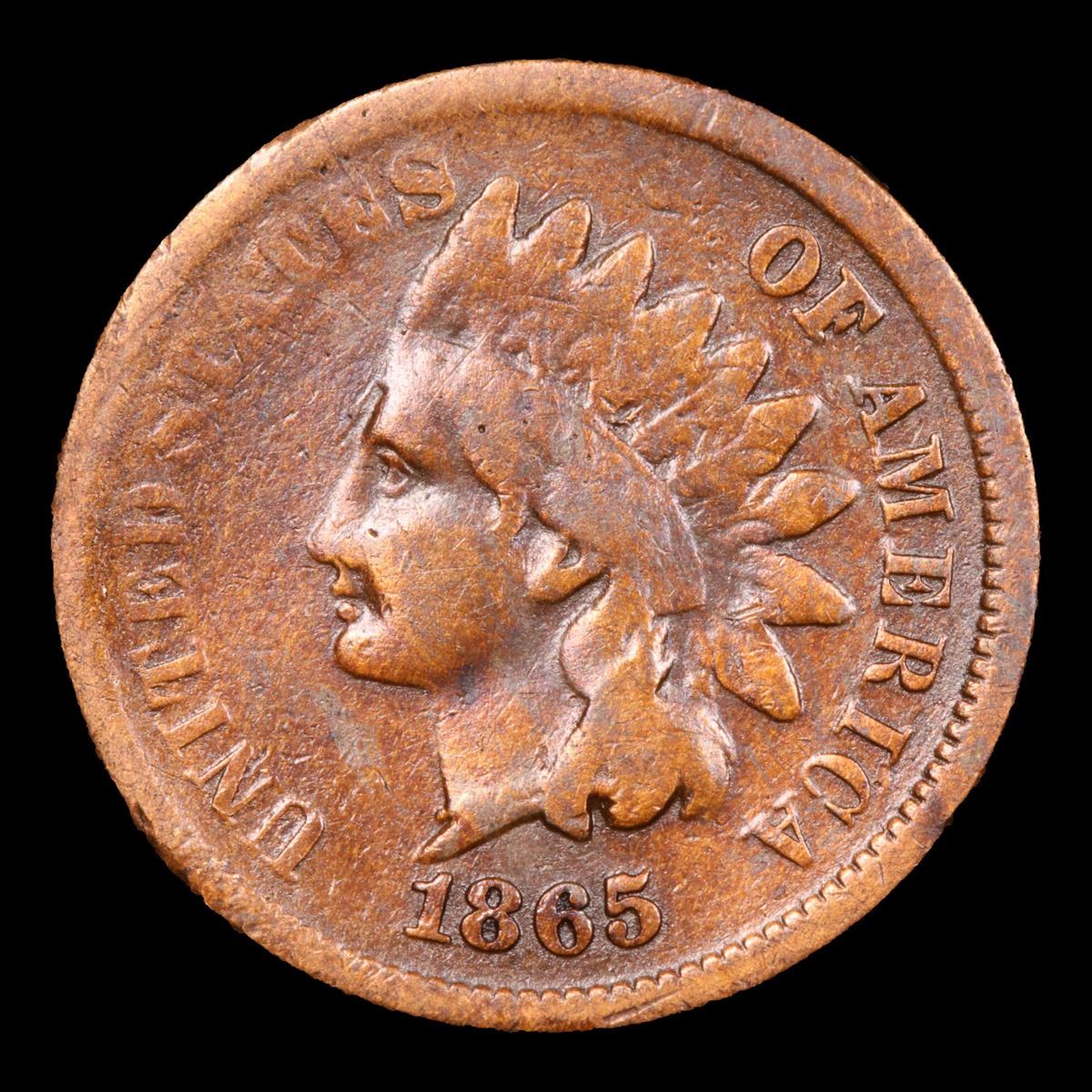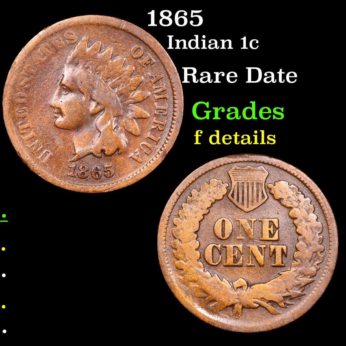 1865 Rare Date . Indian Cent 1c Grades f details.