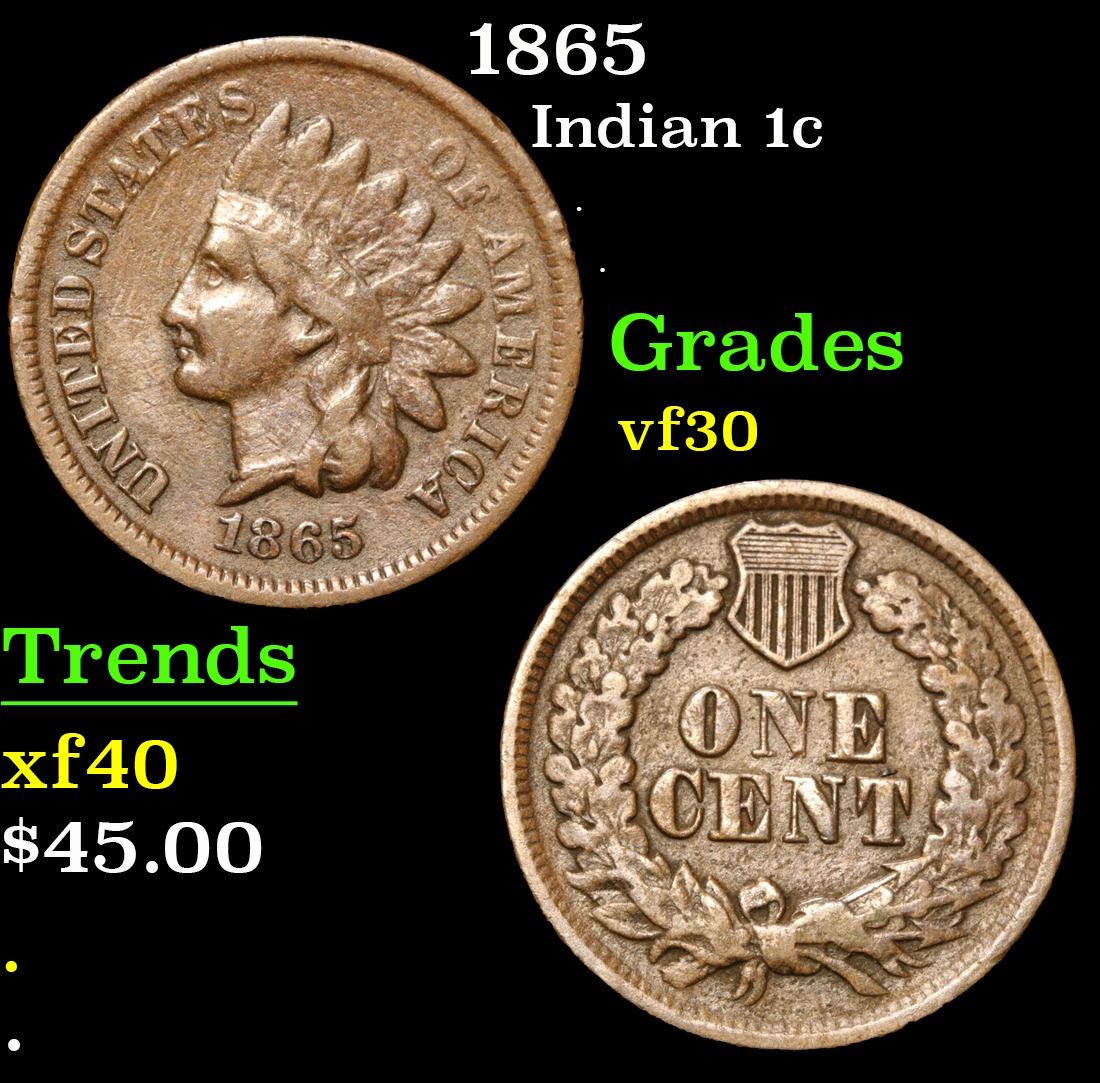 1865 . . Indian Cent 1c Grades vf++.