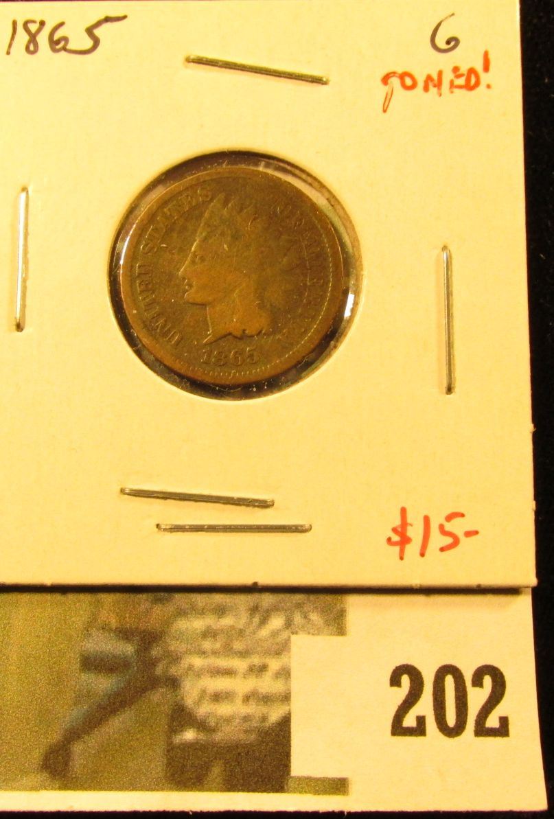 1865 Indian Cent, G toned, value $15