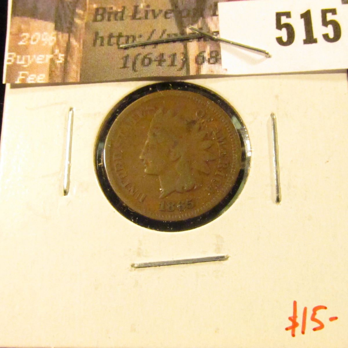 1865 Indian Head Cent, G+, value $15