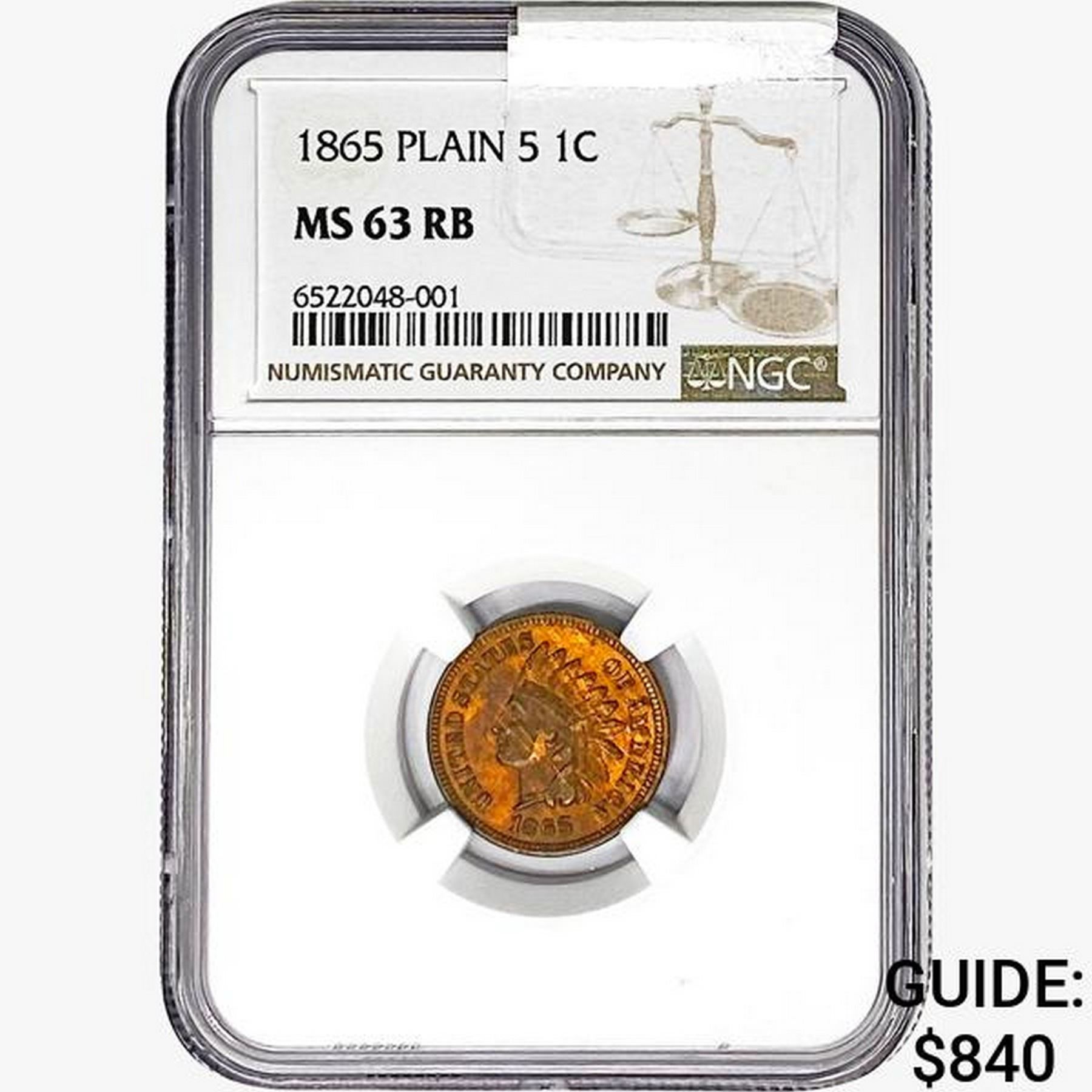 1865 Indian Head Cent NGC MS63 RB Plain 5