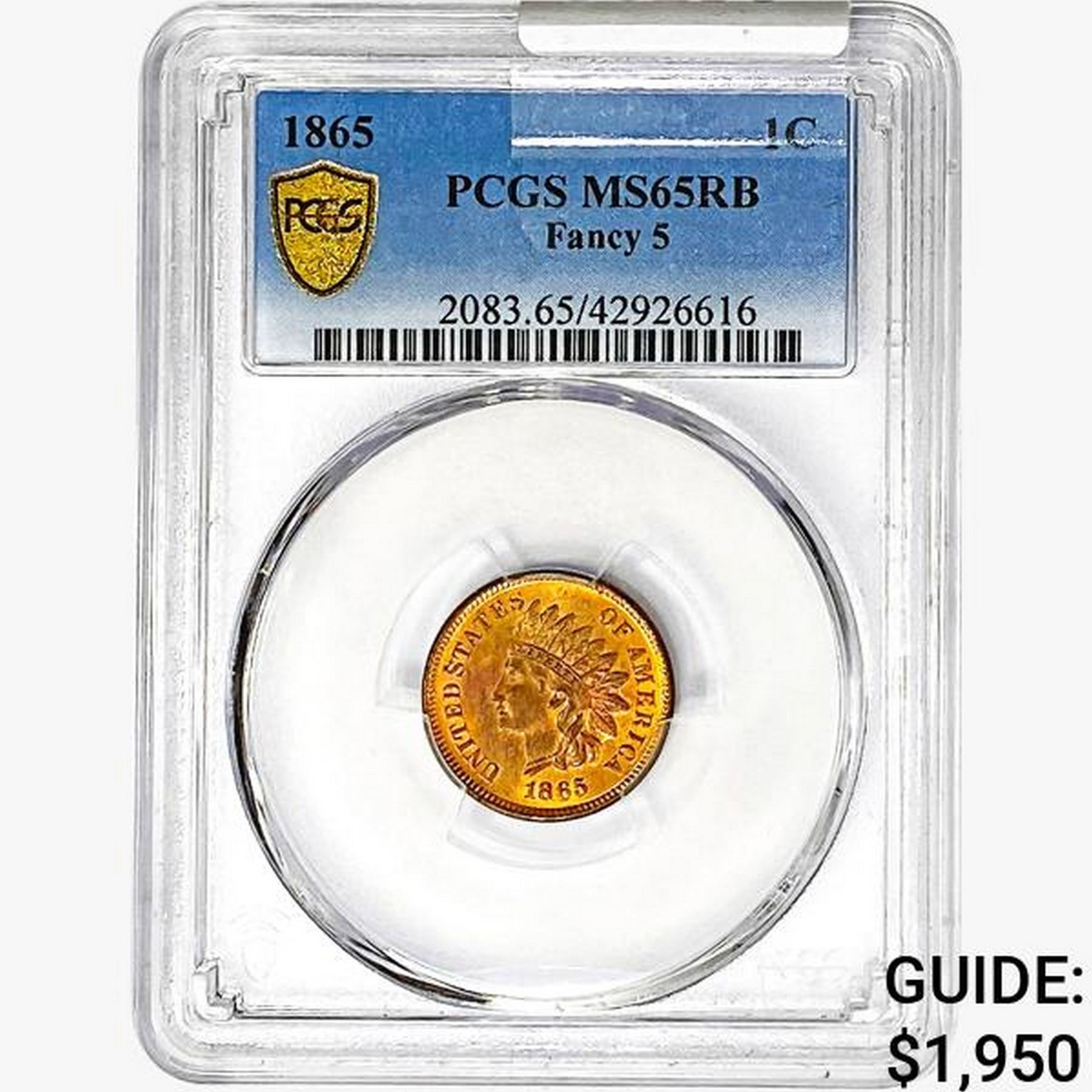 1865 Indian Head Cent PCGS MS65 RB Fancy 5