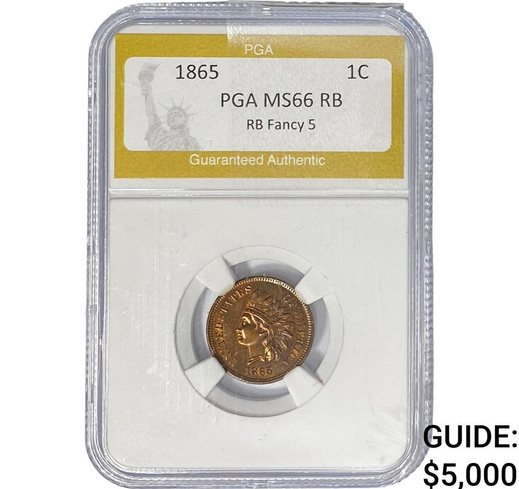 1865 Indian Head Cent PGA MS66 RB Fancy 5