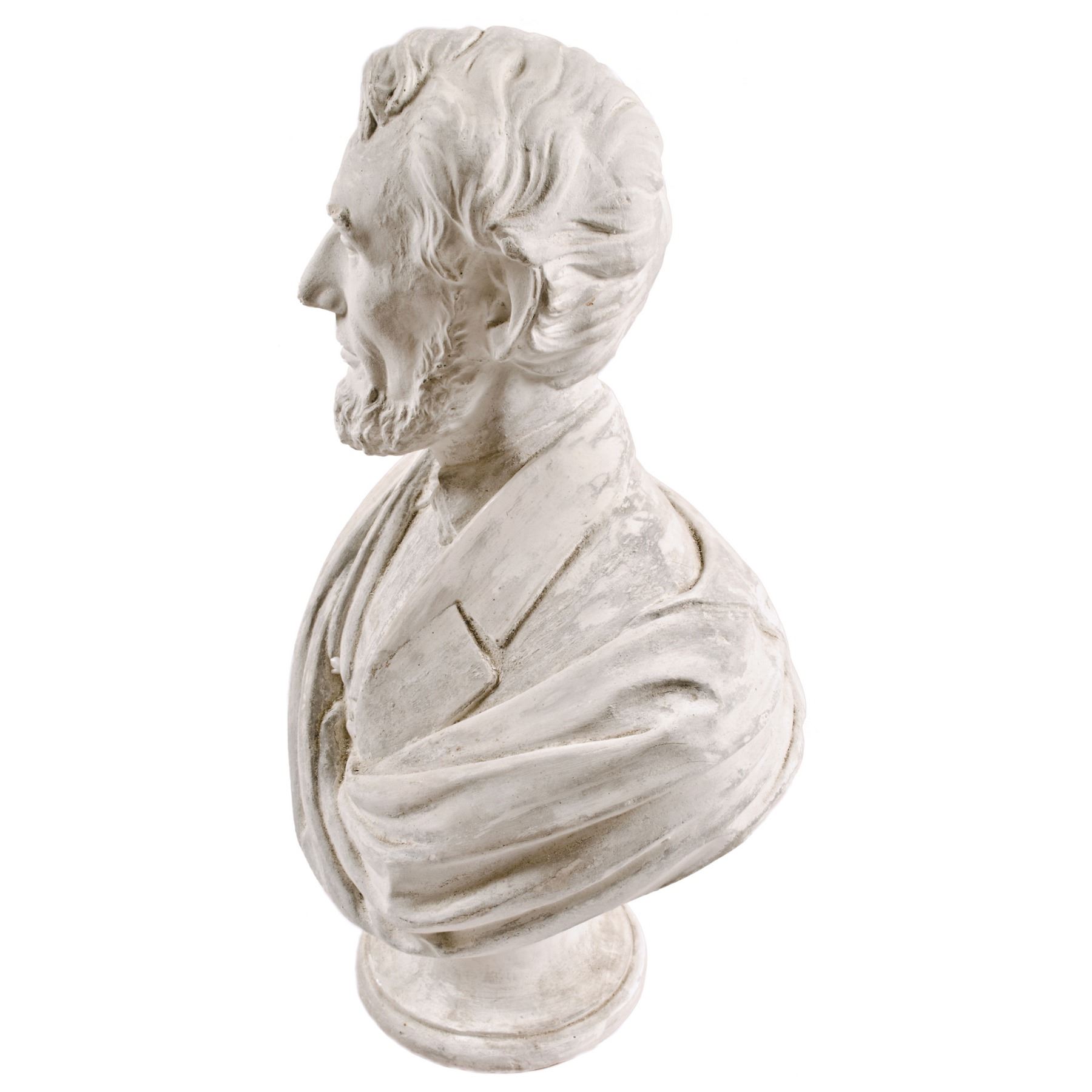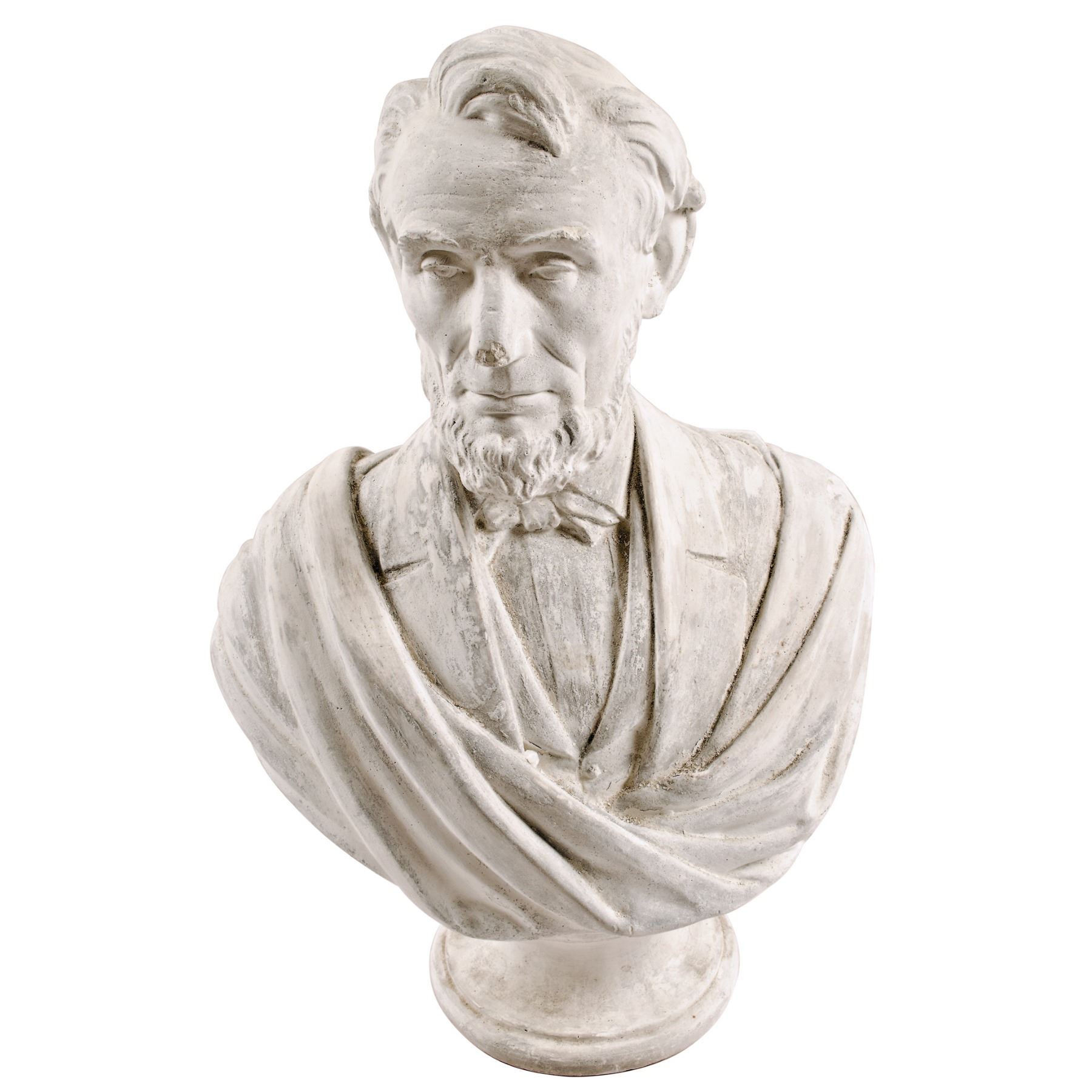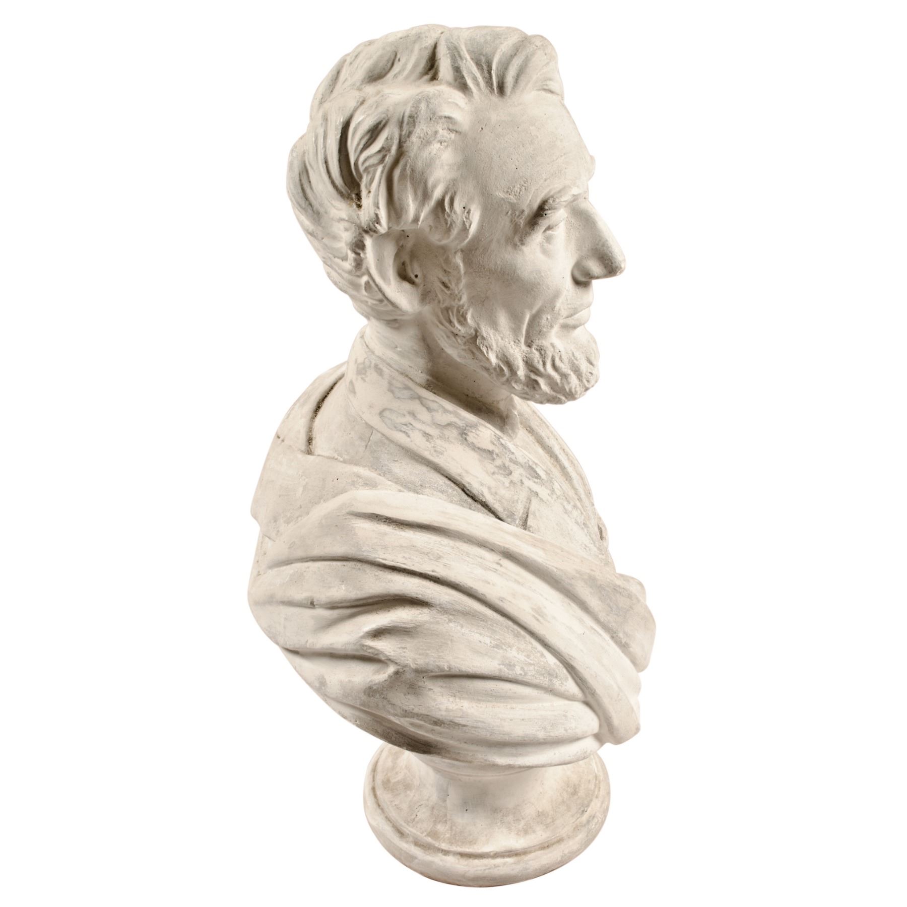 Original American Sculpture Bust Artwork is dated 1865. It was produced with great skill and in handsome detail, worked in chalk, measuring about 18” tall x 12” wide. Written under and into its rear is “D. Morgan, Sculptor. - 1865” plus the words “Patent Pending”. This large impressive Bust shows a pensive President Abraham Lincoln with toga draped about his shoulders, upon a pedestal about 3.5” high for its display, all being sculpted from one piece, with the central cavity hollow. This Bust weight is about 10 pounds with minor nicks on his brows and the very tip of his nose (simple to smooth). Overall, there is slight actual wear as this decorative Bust of Abraham Lincoln as it was meant for display. The first of this historic memorial design and type we have offered, and certainly of museum quality.