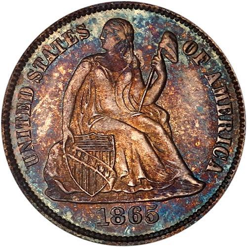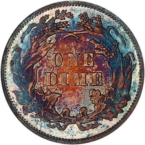 From an original mintage of only 10,000 and of course the mint state coins are rarer than the proofs. A purple, blue and gold proof-like gem, only eight coins are equal and twenty-five finer certified by either grading service. Bids $2100 and trends $4500.