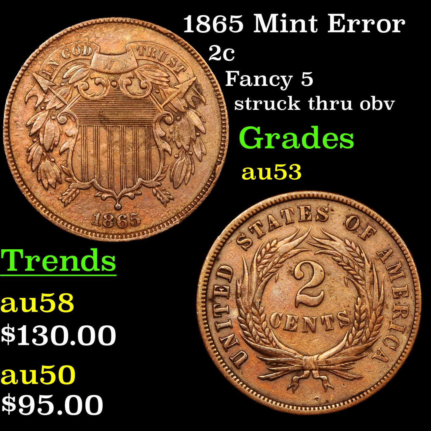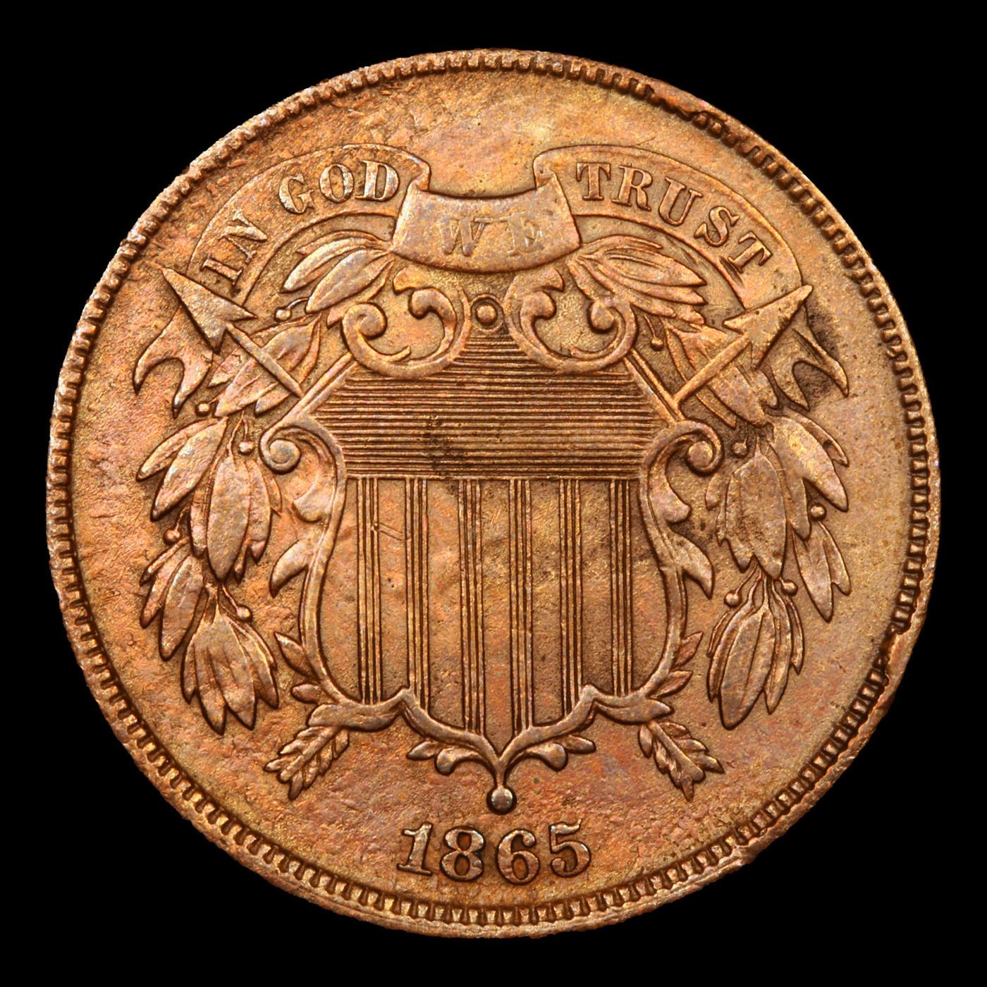 1865 Mint Error Two Cent Piece 2c Graded Select AU.