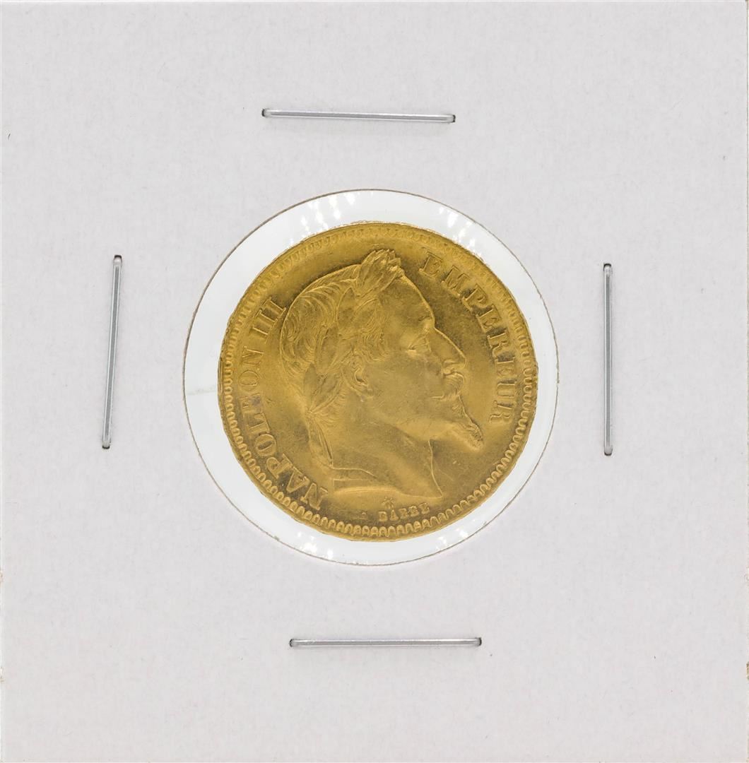 One 1865 Napoleon III 20 Francs Gold Coin.
