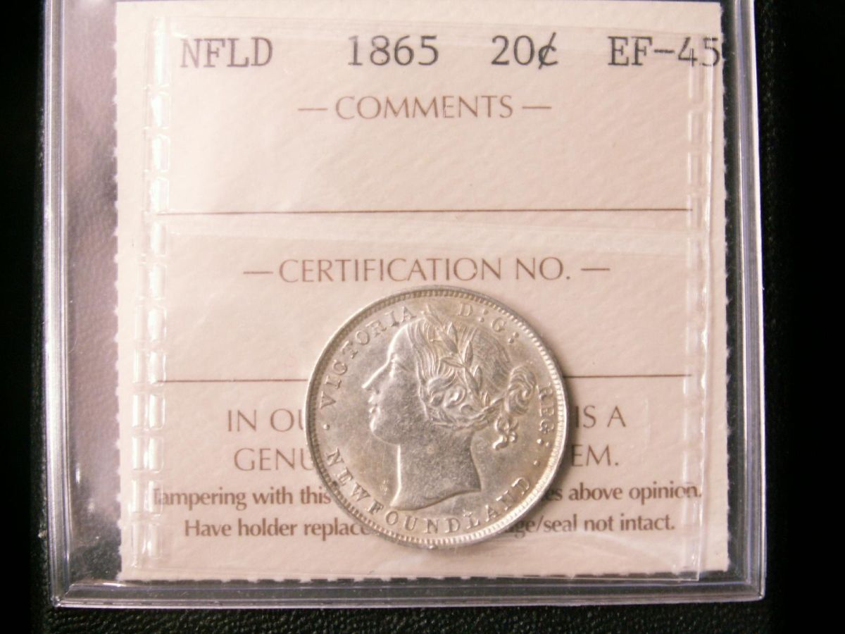 1865 Nfld 20¢ ICCS EF45. Attractive lustrous example.