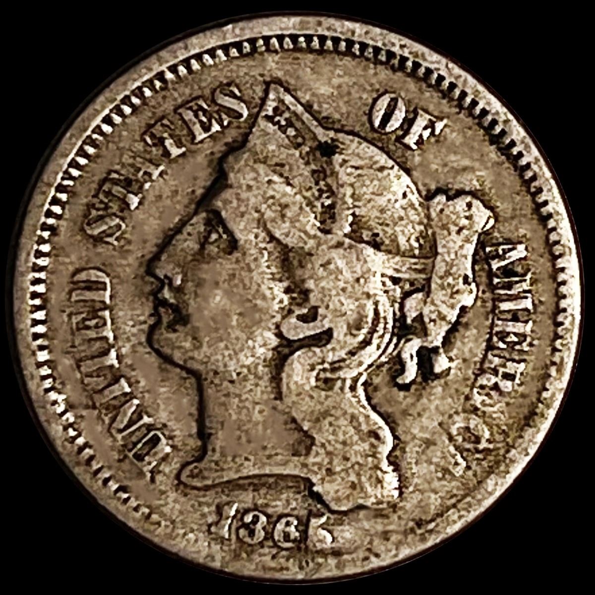 1865 Nickel Three Cent LIGHTLY CIRCULATED