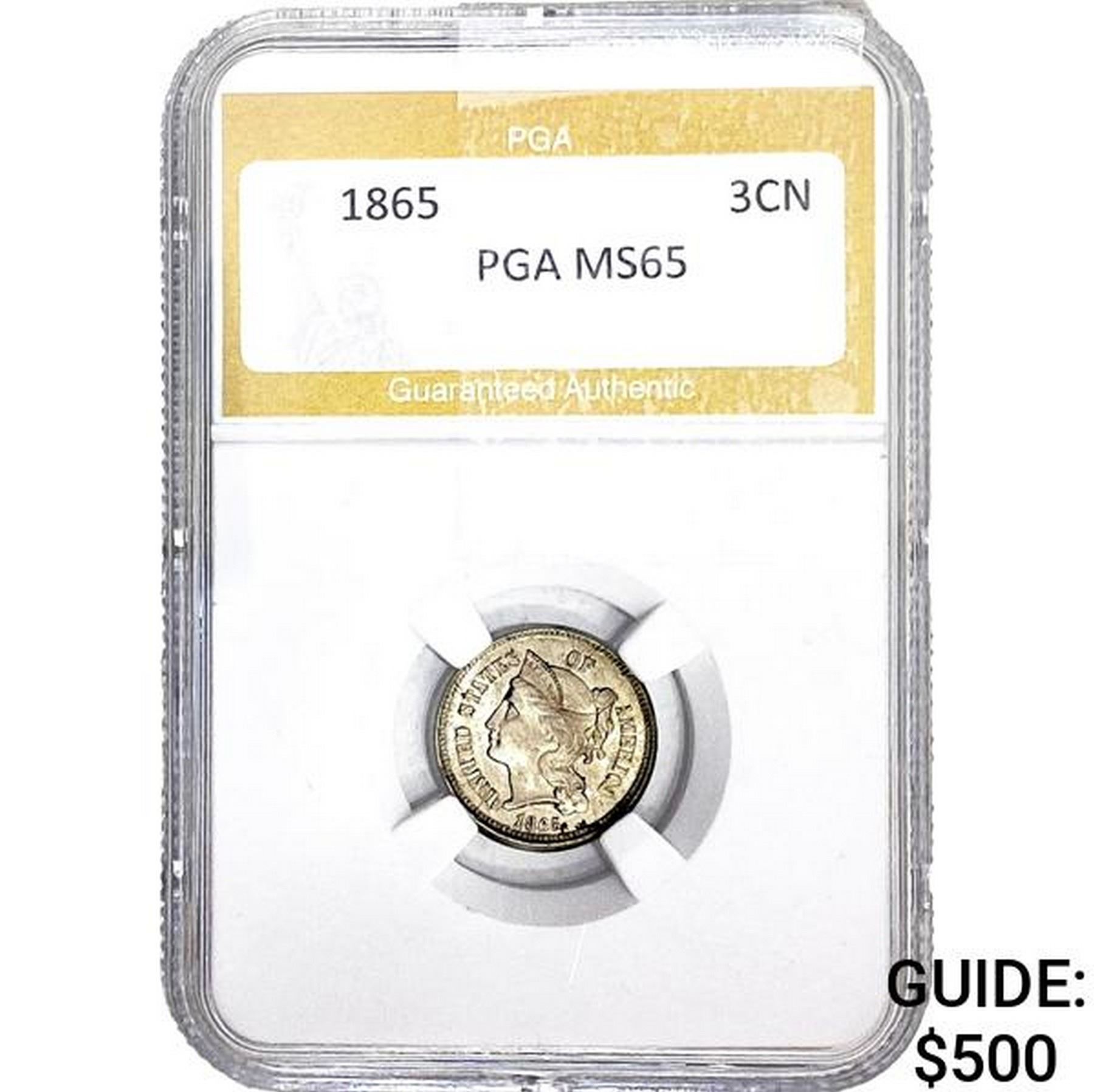 1865 Nickel Three Cent PGA MS65