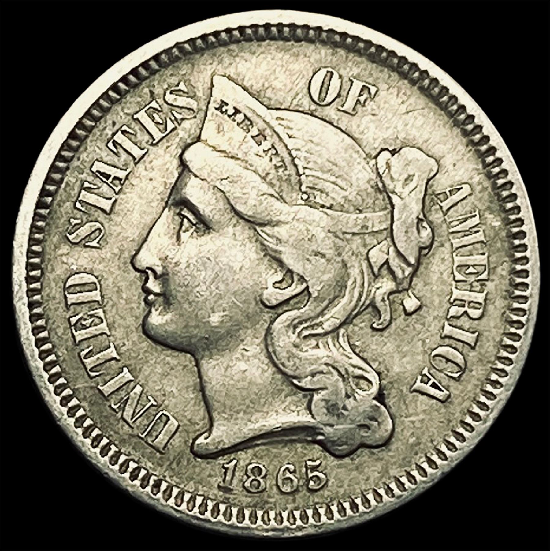 1865 Nickel Three-Cent Piece NEARLY UNCIRCULATED