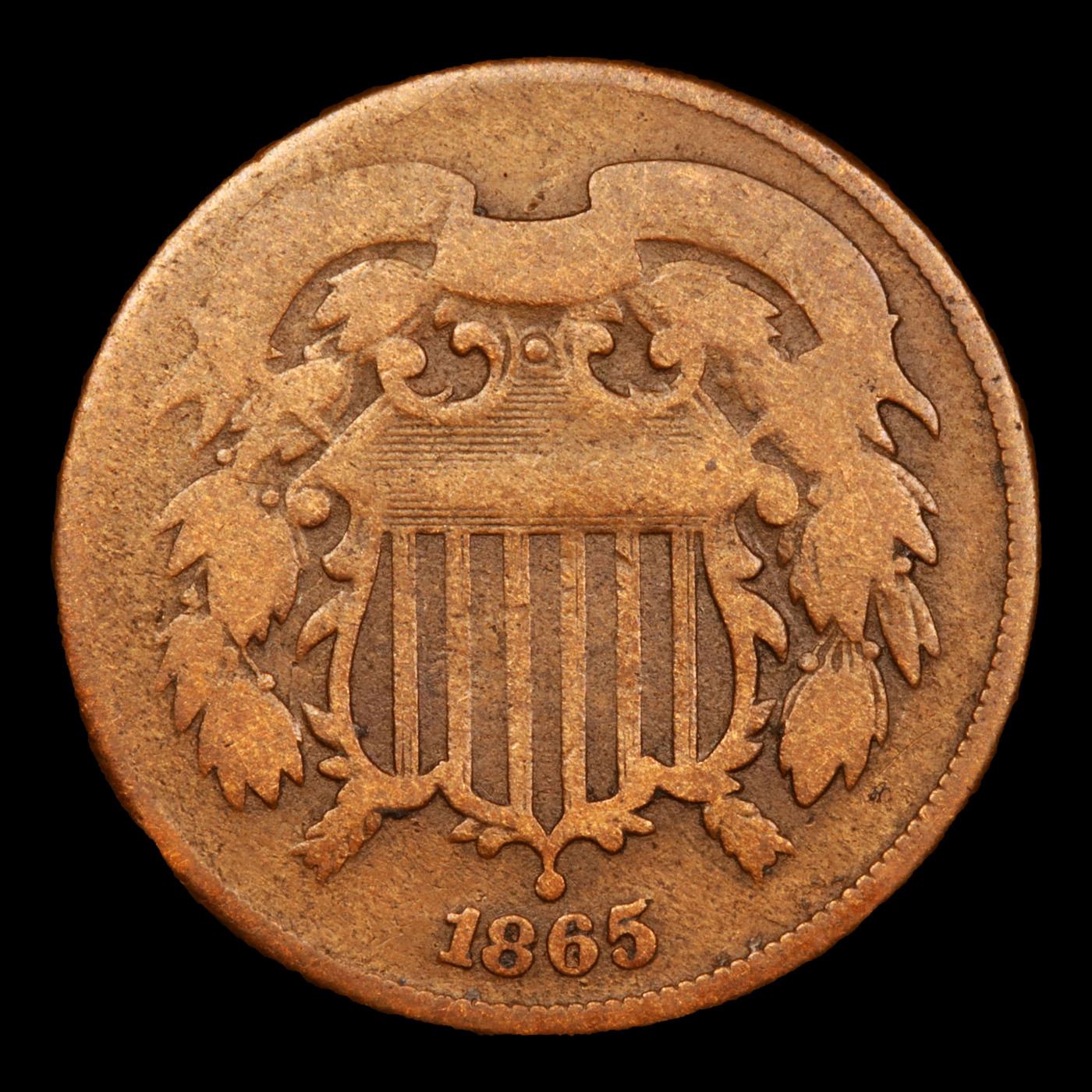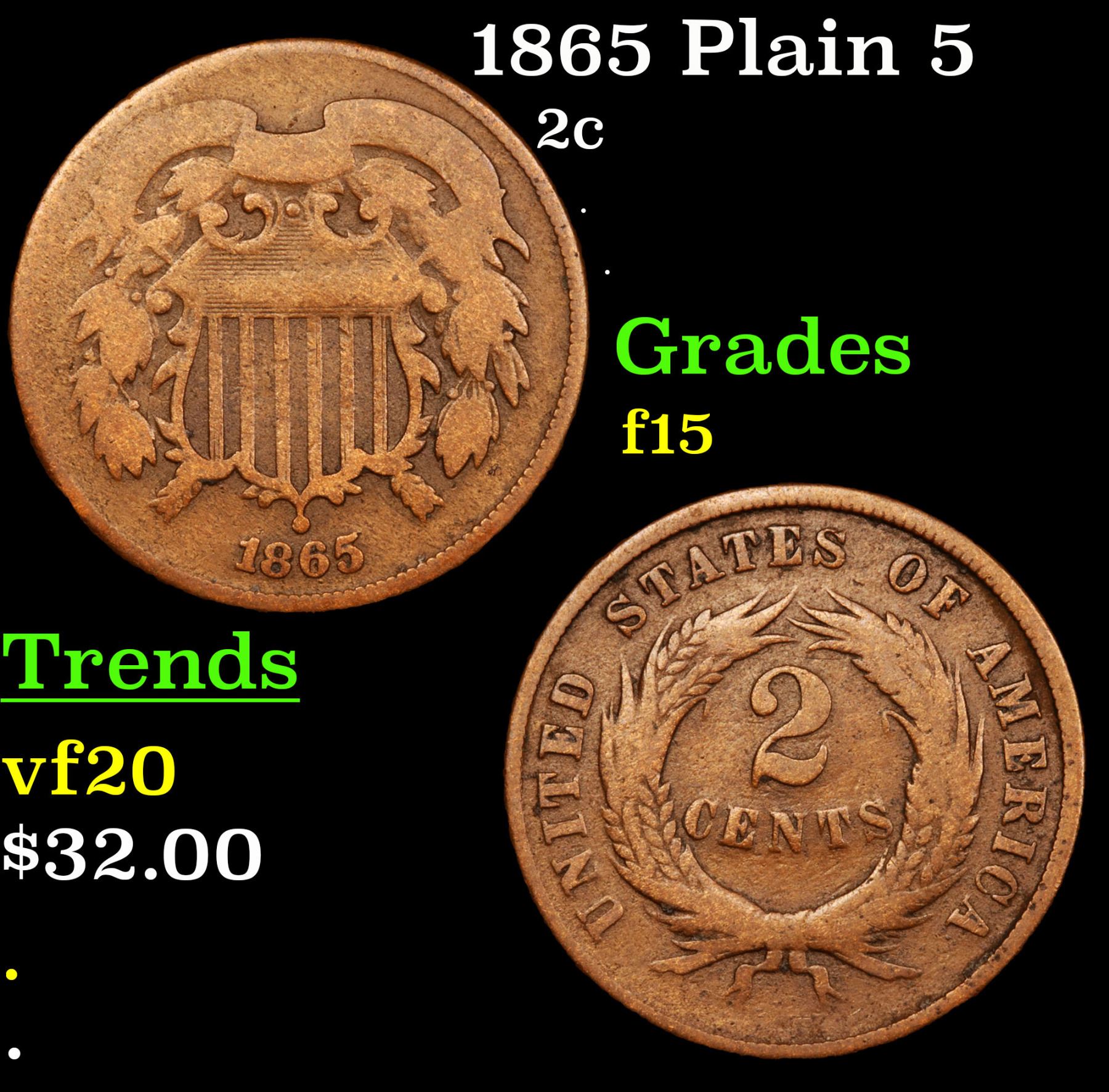 1865 Plain 5 Two Cent Piece 2c Grades f+.
