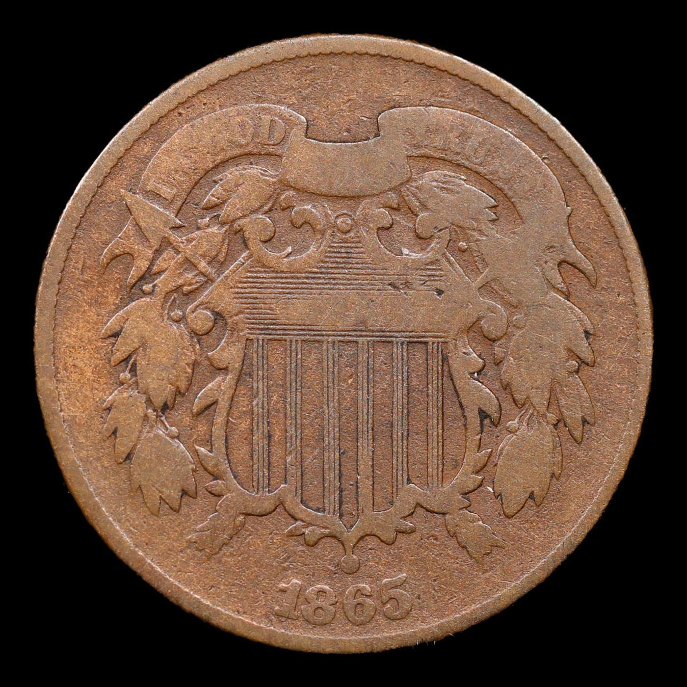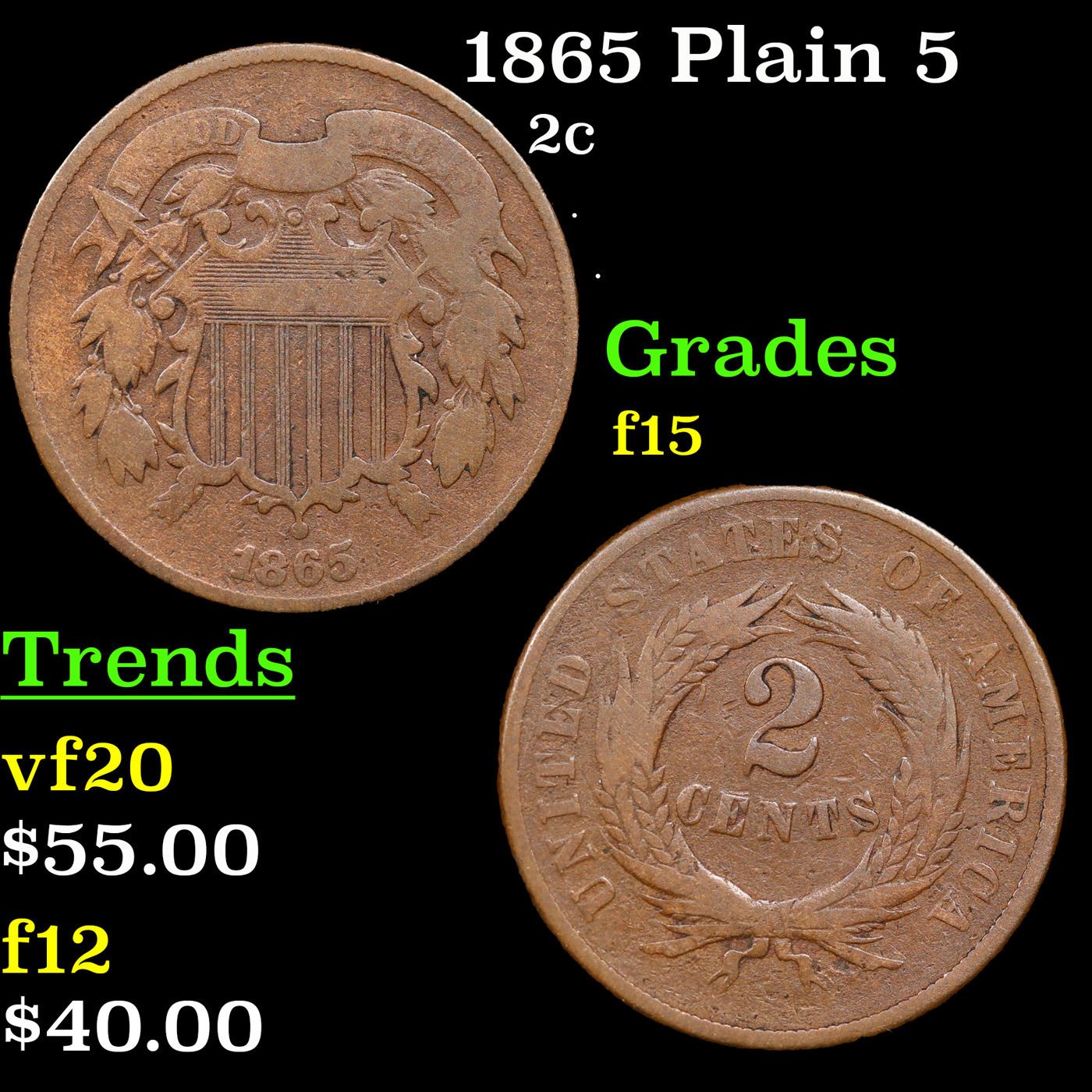 1865 Plain 5 Two Cent Piece 2c Grades f+.
