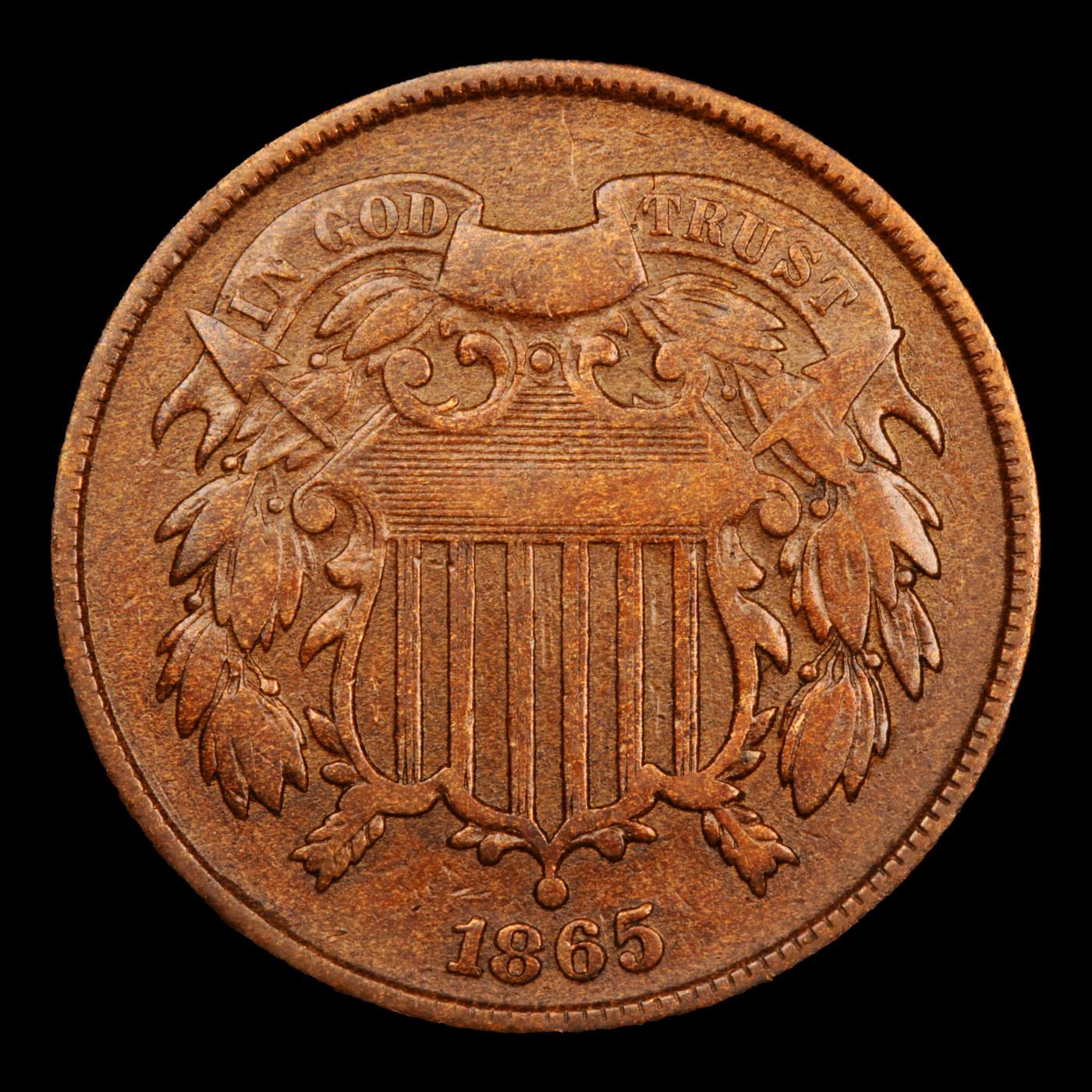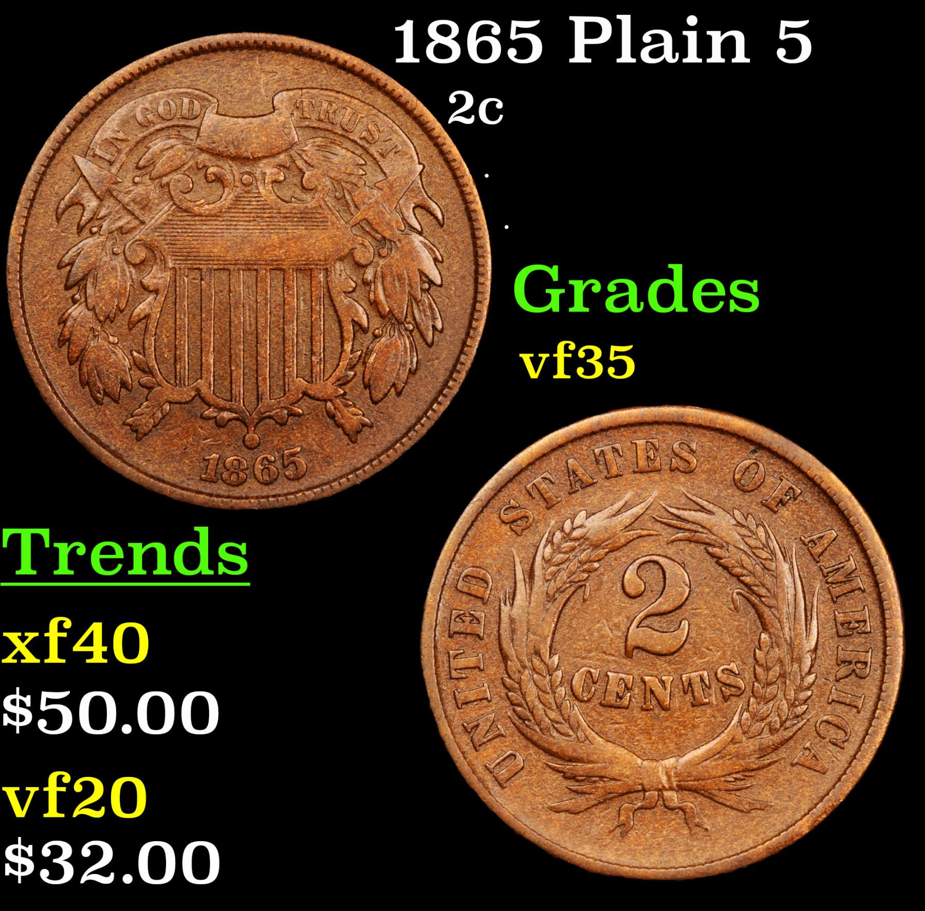 1865 Plain 5 Two Cent Piece 2c Grades vf++.
