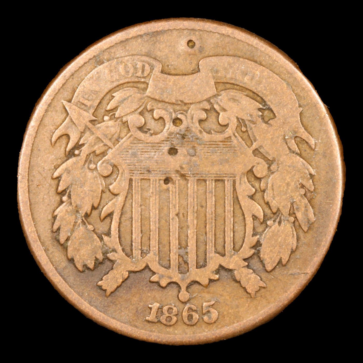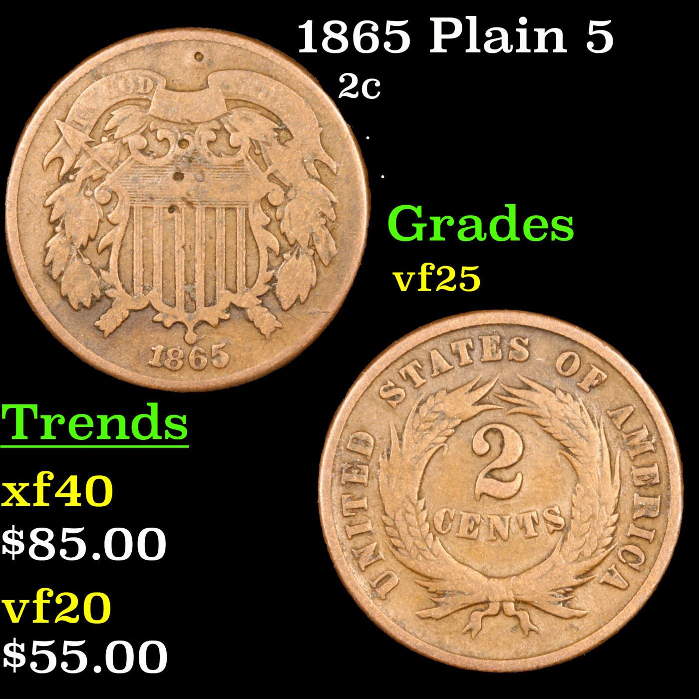 1865 Plain 5 Two Cent Piece 2c Grades vf+.