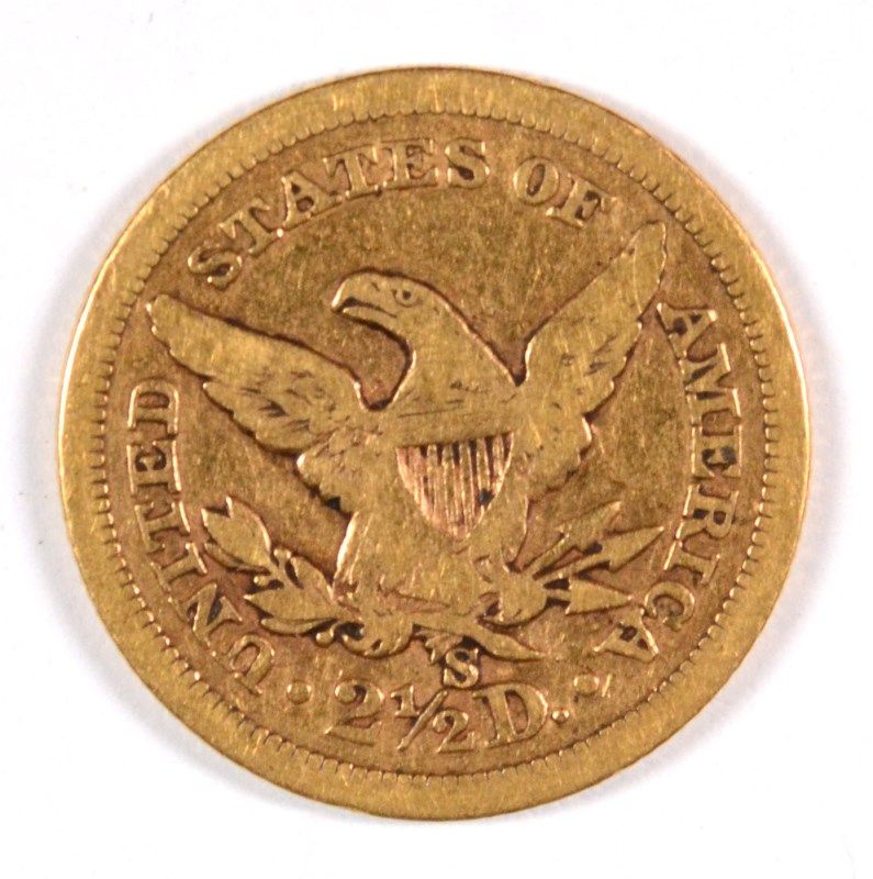 1865-S $2.50 GOLD LIBERTY, XF, SCRATCH OBV.