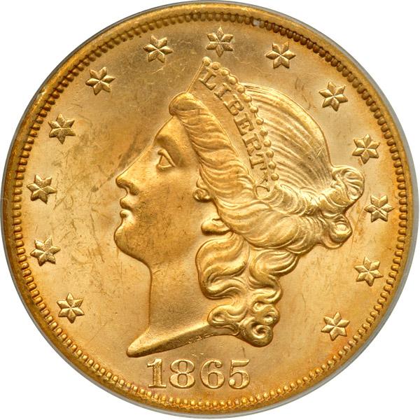 The Deep Sea Research group of entrepreneurs found and recovered 1,207 coins from the wreck of the Brother Jonathan, mostly in the form of 1865-S double eagles. Today, these are available in frosty Mint State grades. That source has also made a few Gem-quality examples available to collectors, although their number is currently limited to just a handful of MS65 and MS66 pieces. As such, the 1865 is, while not rare, considered one of the most historic offerings available to American numismatists.