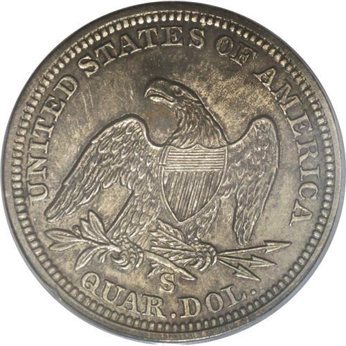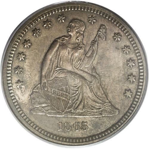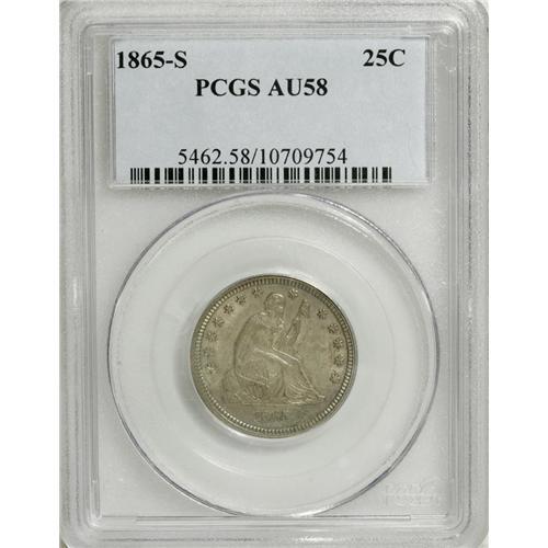1865-S 25C AU58 PCGS. This issue is quite elusive, esp