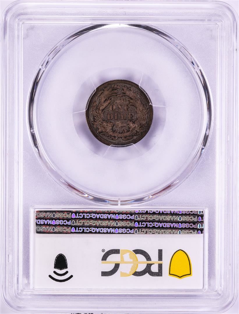 One 1865-S Seated Liberty Dime Coin PCGS F12. PCGS Graded.