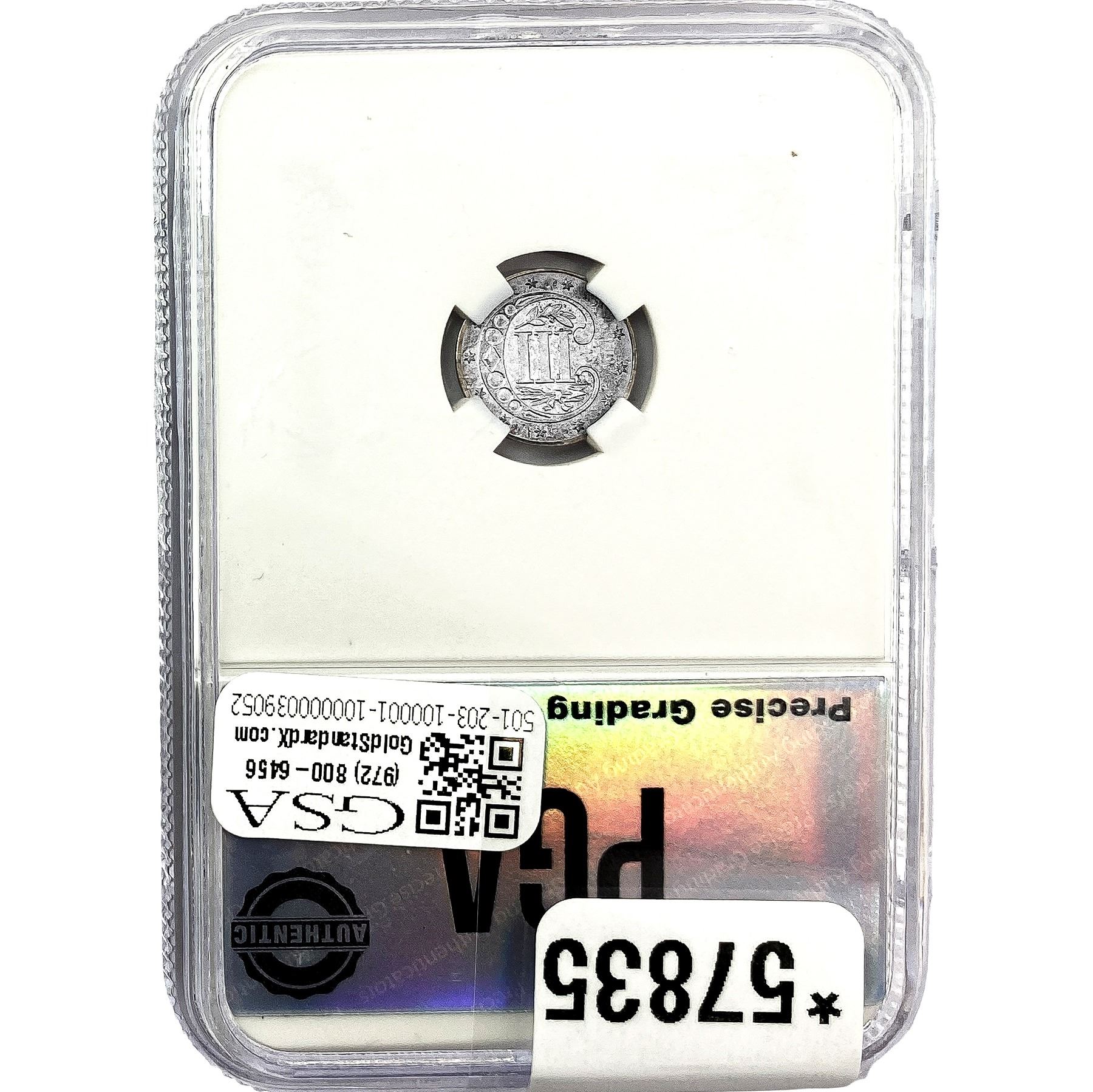 1865 Silver Three Cent PGA MS64