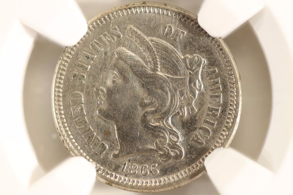1865 THREE CENT PIECE (NICKEL) NGC UNC DETAILS