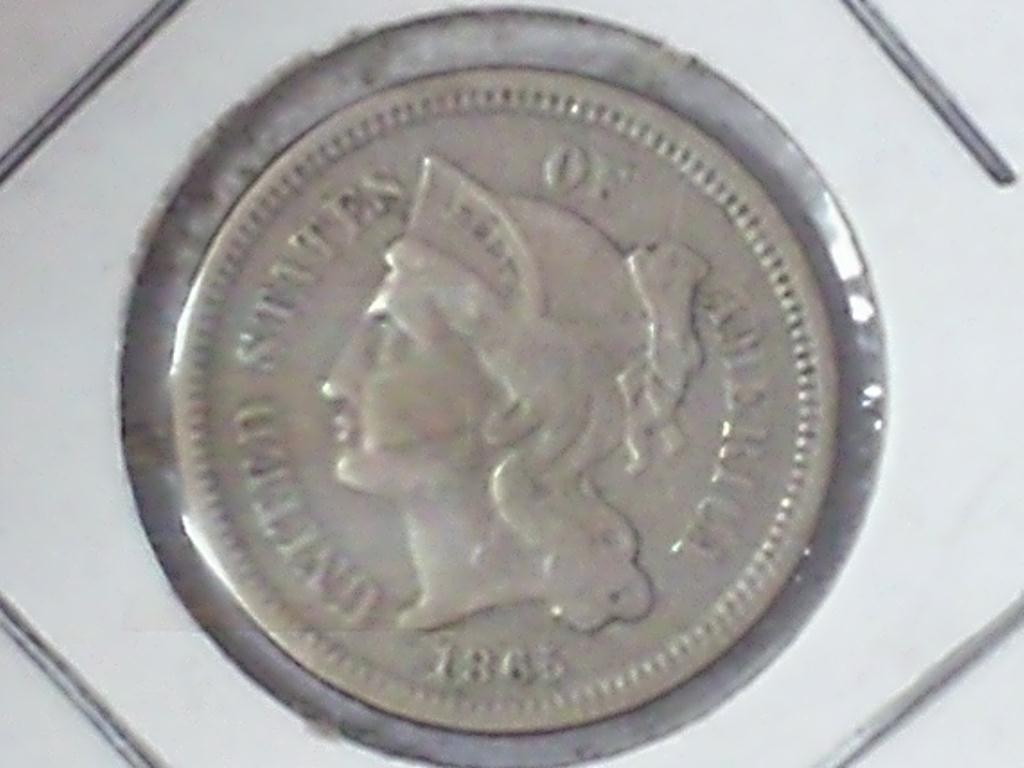 1865 THREE CENT PIECE (NICKEL) (VERY GOOD)