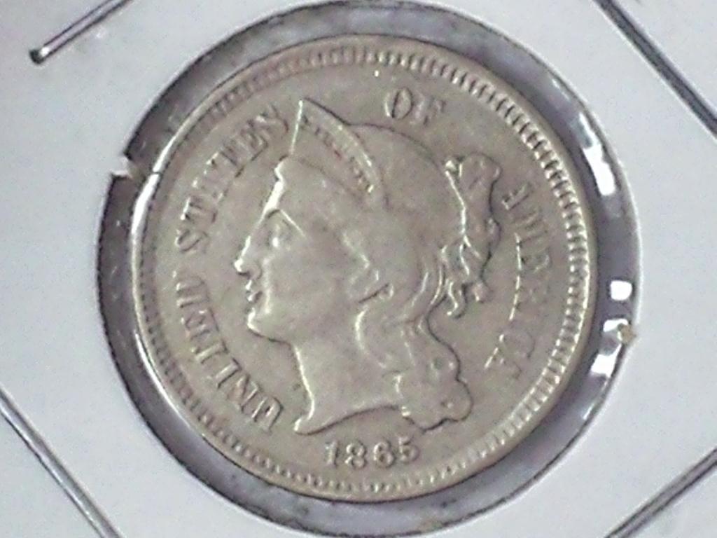 1865 THREE CENT PIECE (NICKEL) (VERY GOOD+)