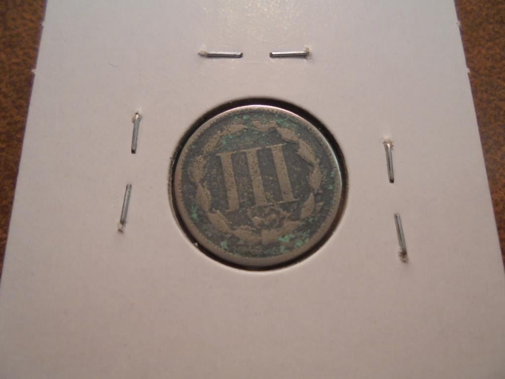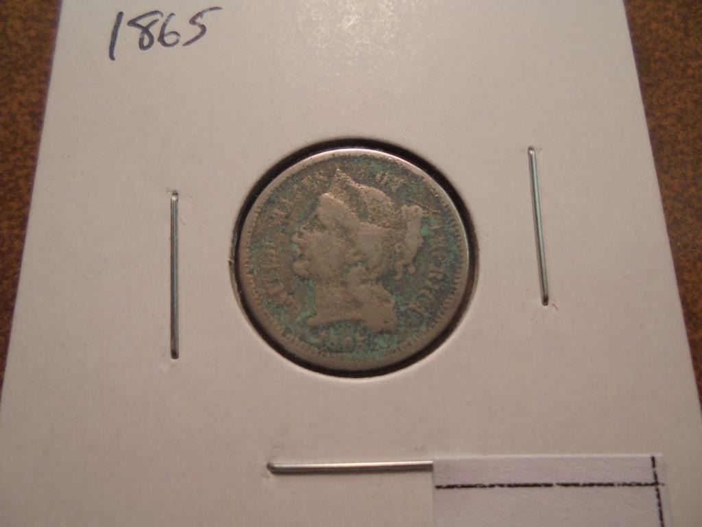 1865 THREE CENT PIECE (NICKEL) WITH VIRDIGRIS