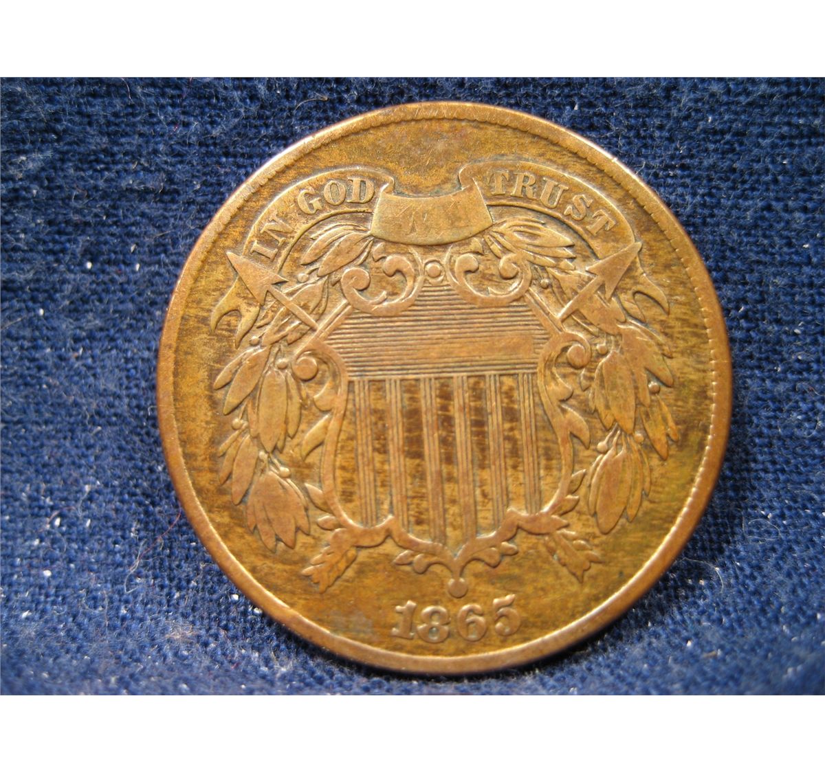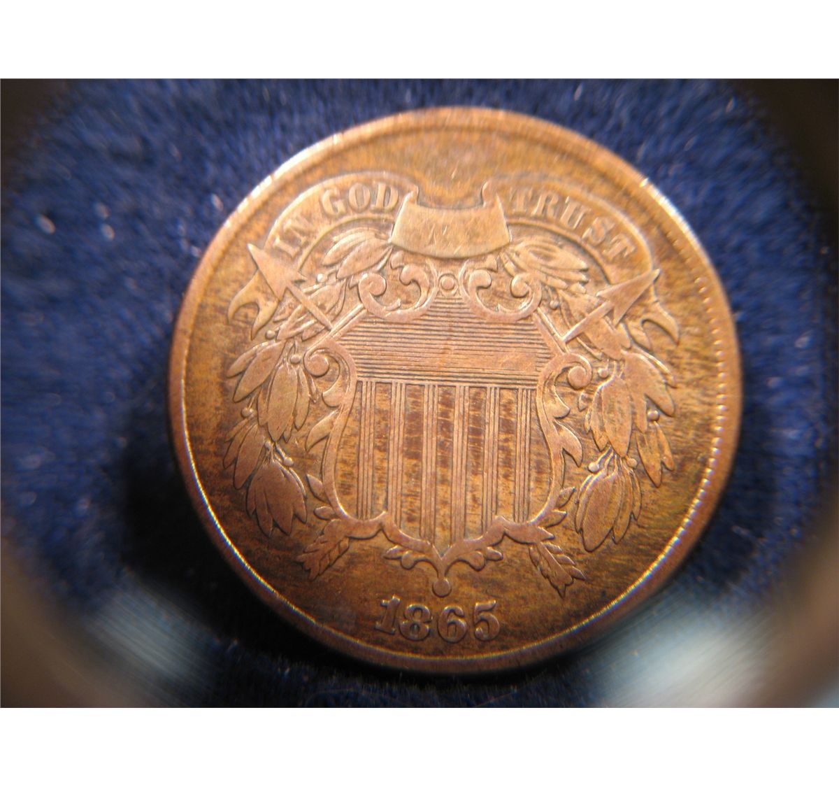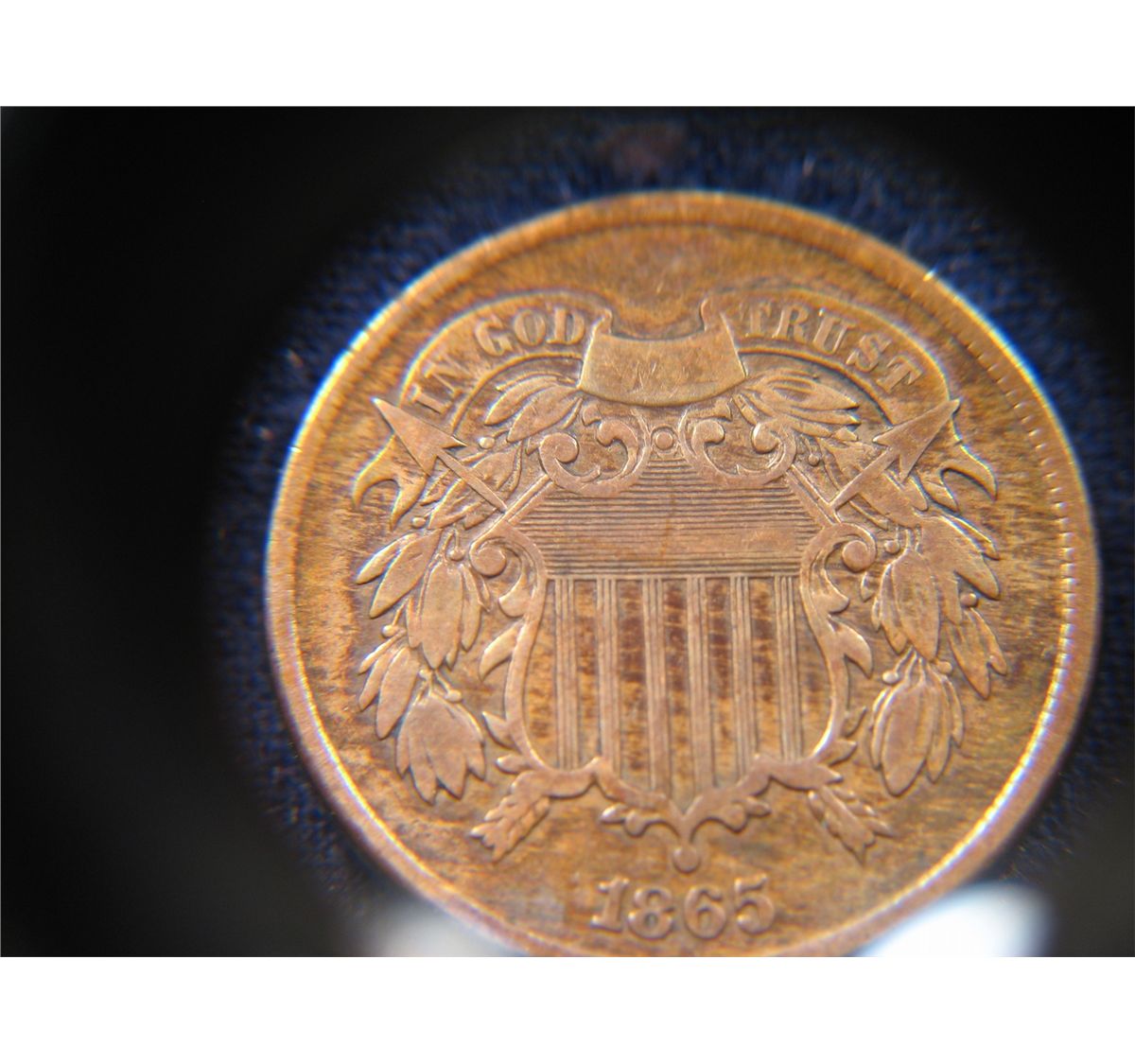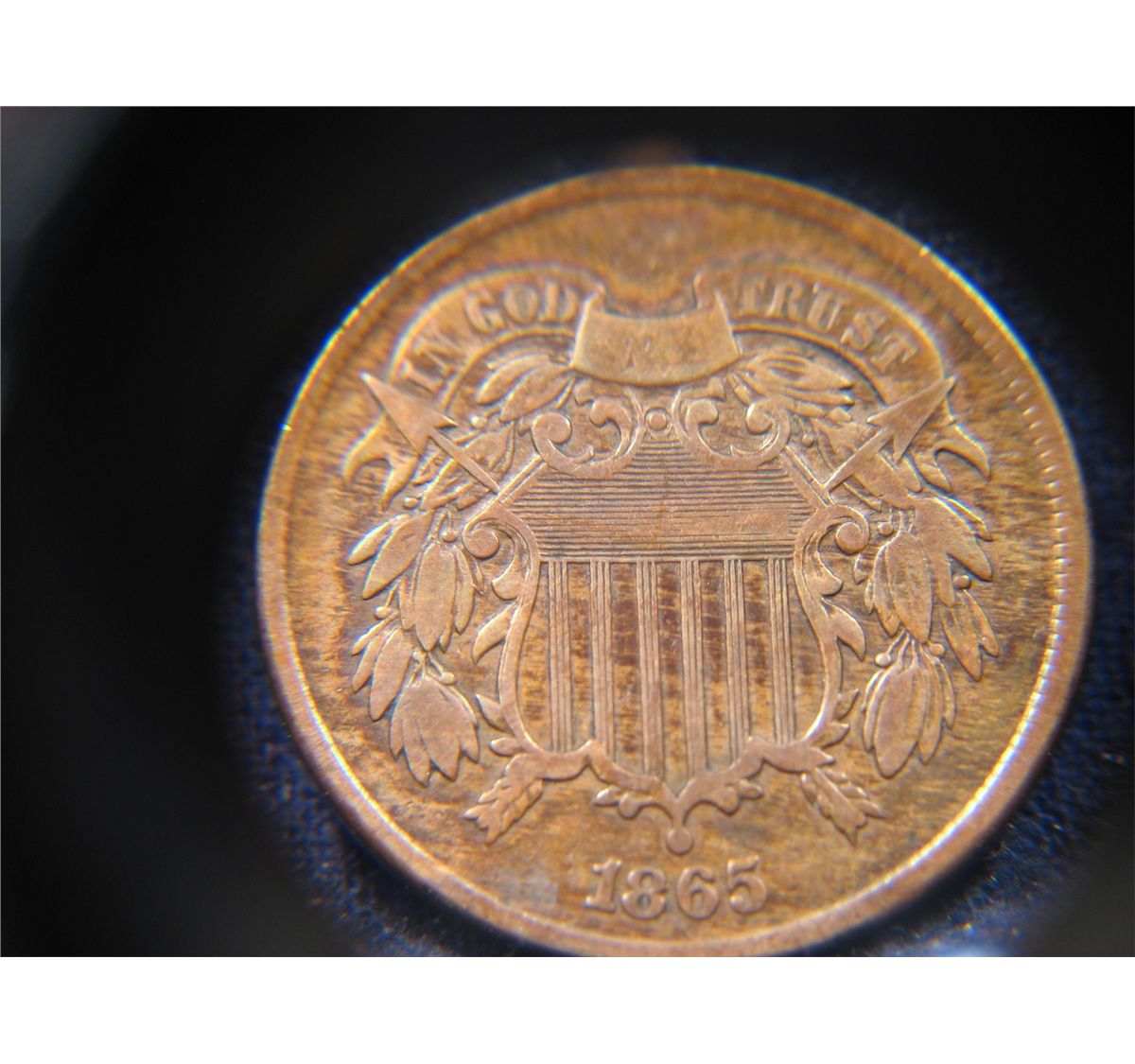 (1) 1865 TWO CENT PIECE - CIVIL WAR ERA TONING RED BROWN