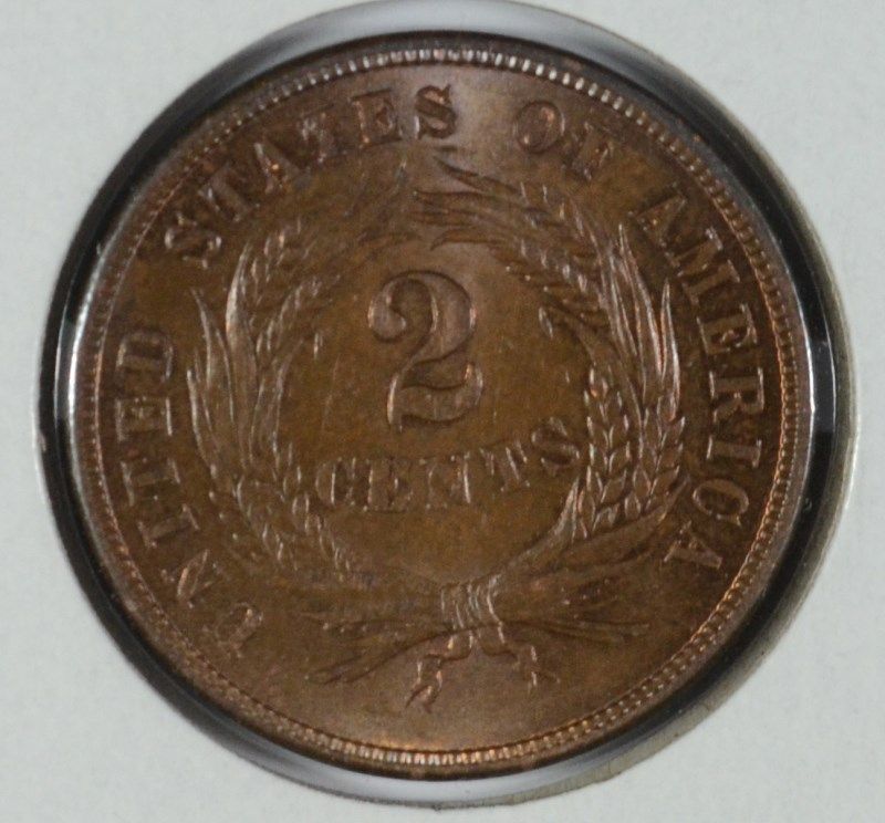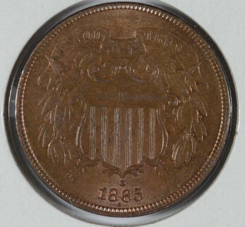 1865 TWO CENT PIECE, MS64 RED / BROWN NICE TYPE COIN!