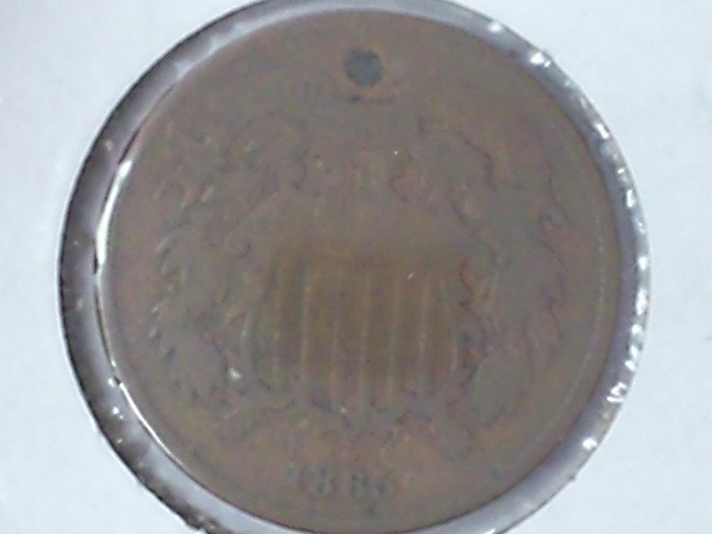 1865 TWO CENT PIECE PIERCED