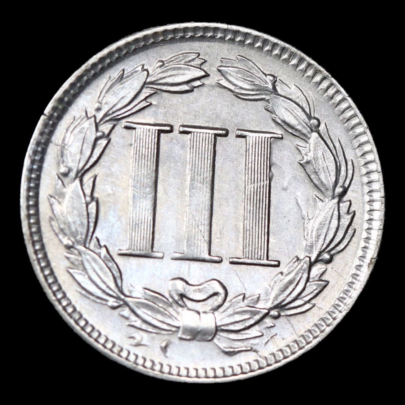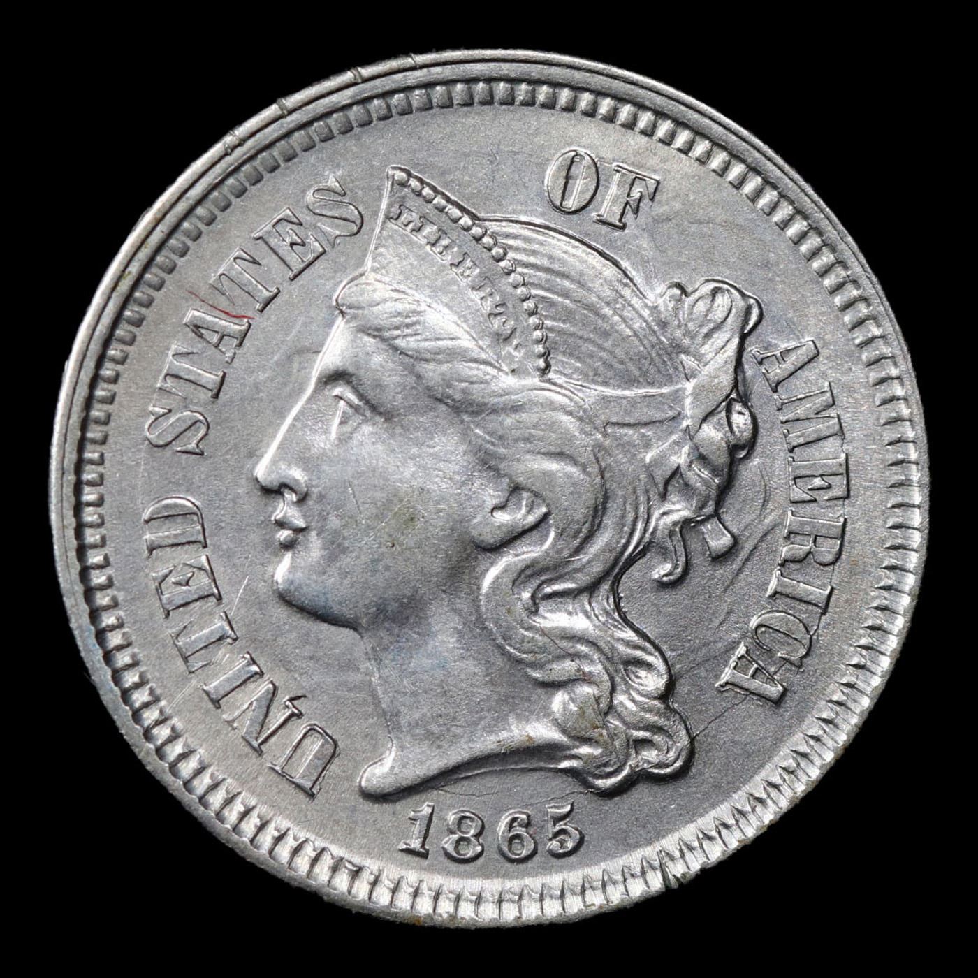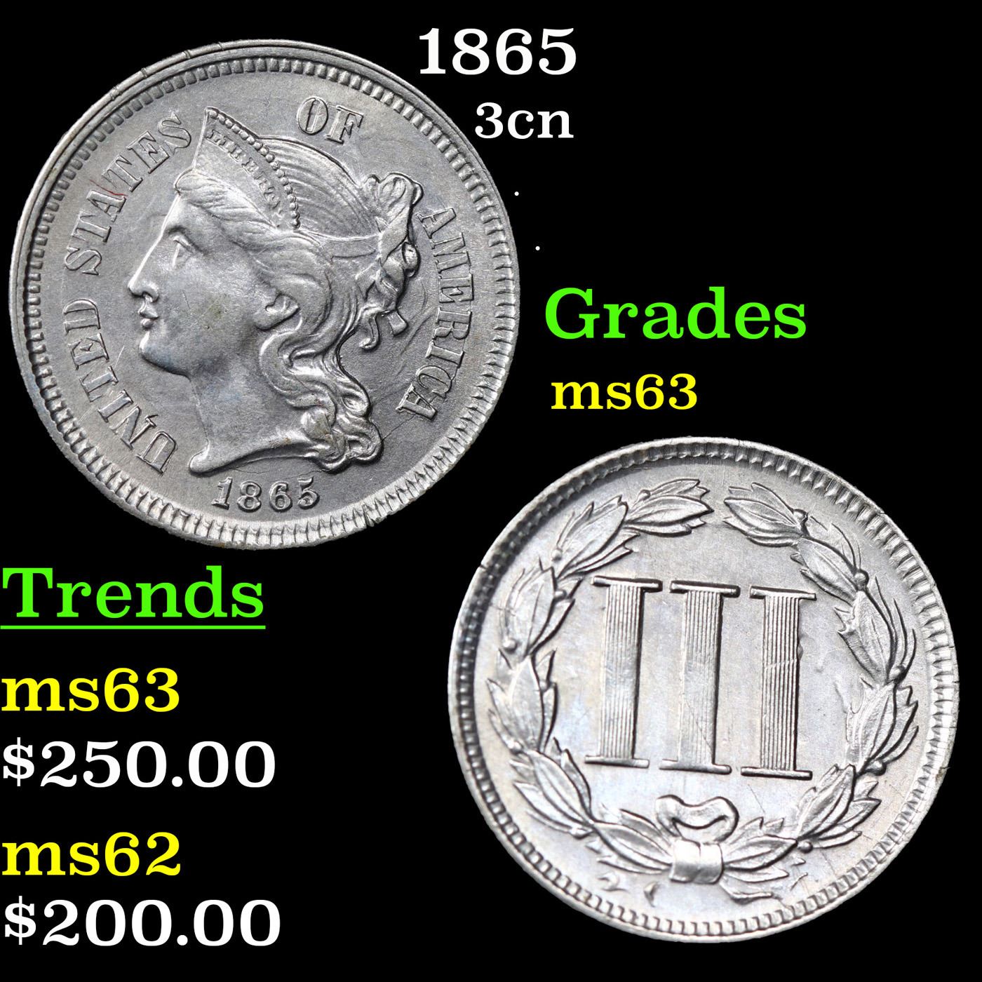 1865 Three Cent Copper Nickel 3cn Grades Select Unc.