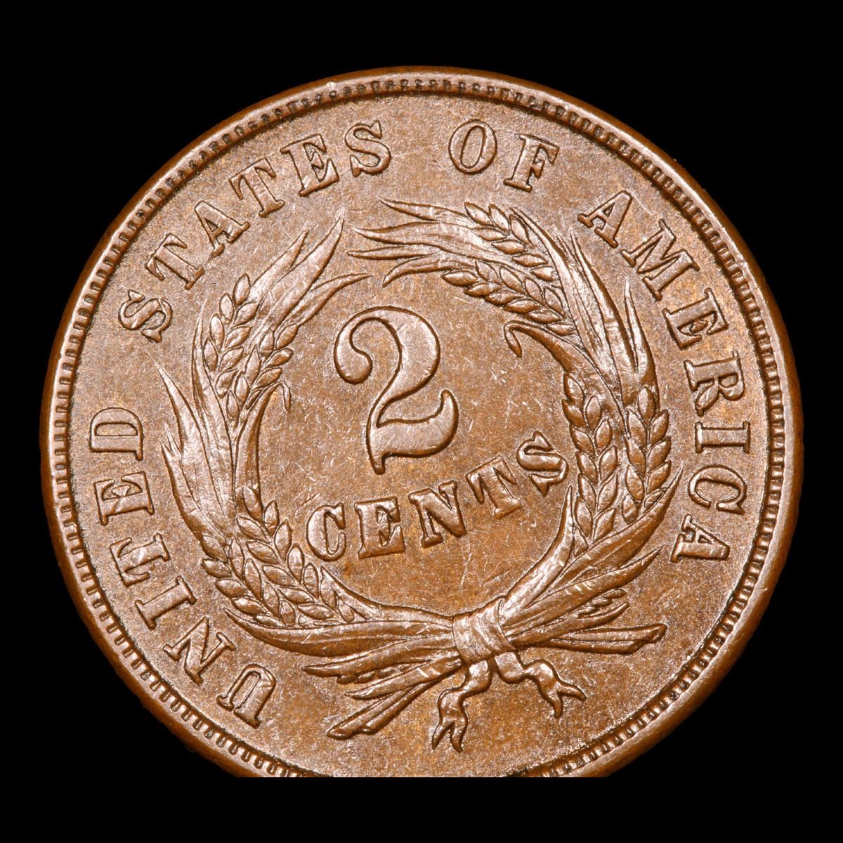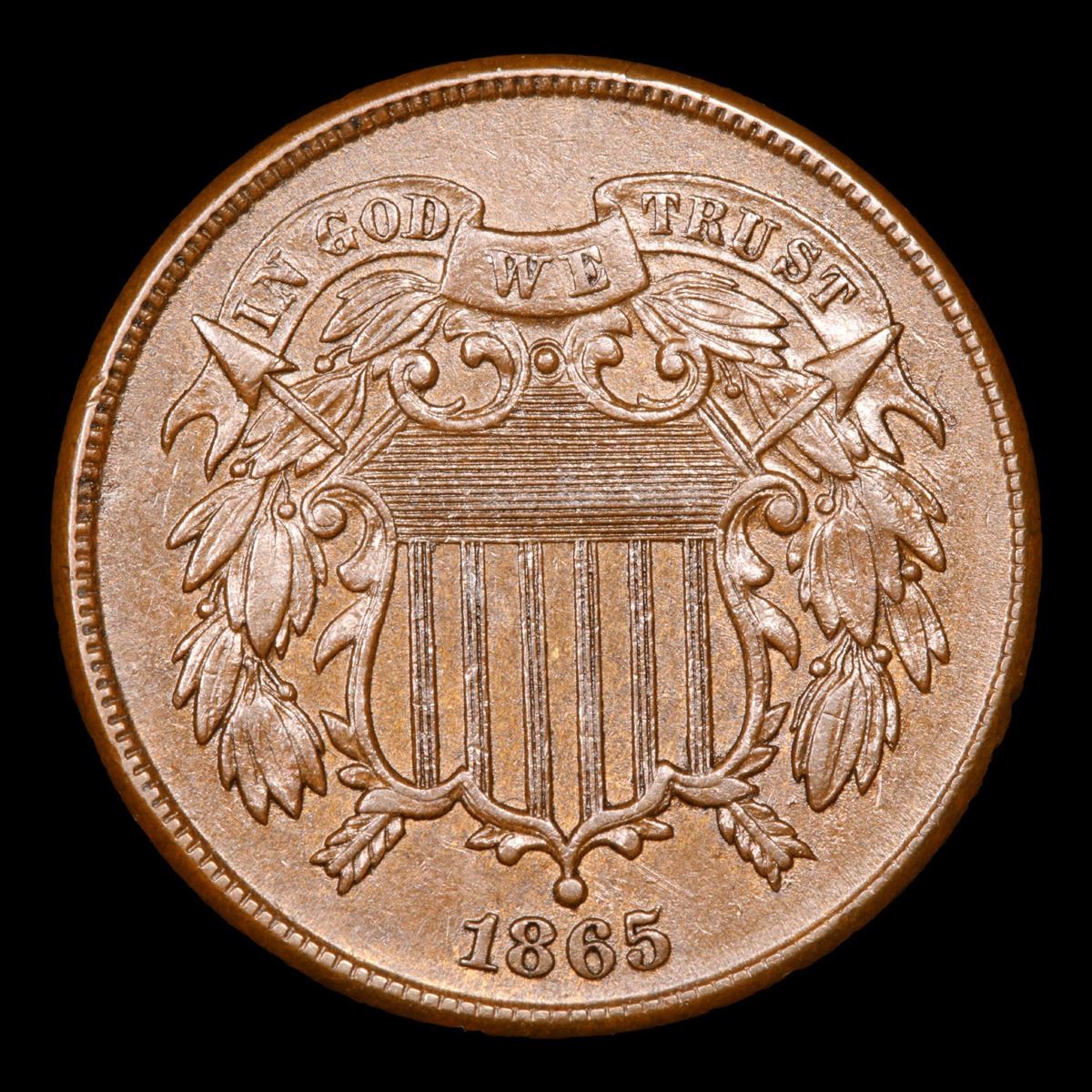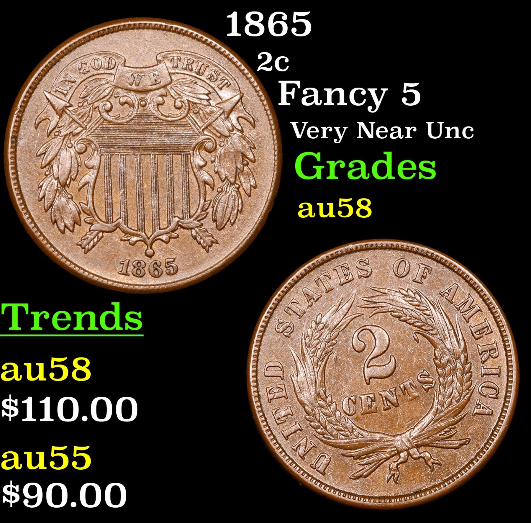 1865 Fancy 5 Very Near Unc Two Cent Piece 2c Grades Choice AU/BU Slider.
