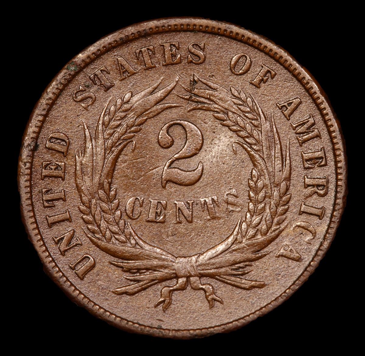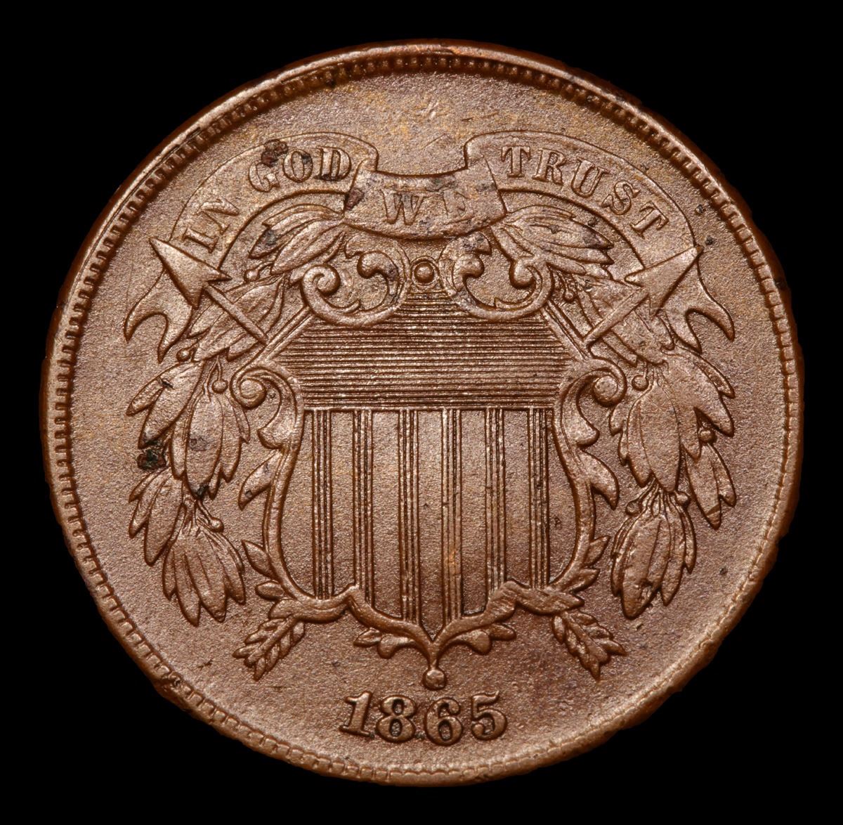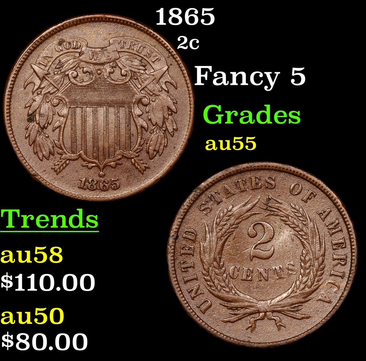 1865 Fancy 5 . Two Cent Piece 2c Grades Choice AU.