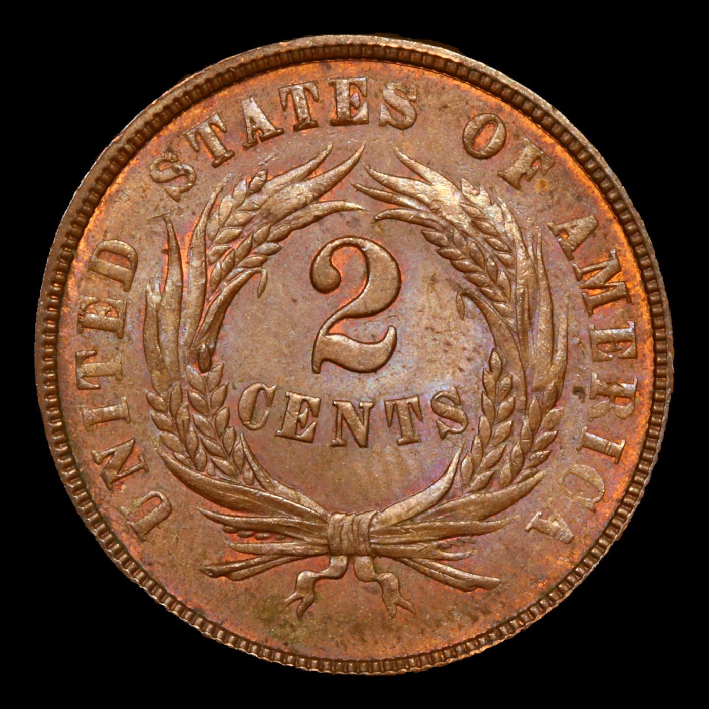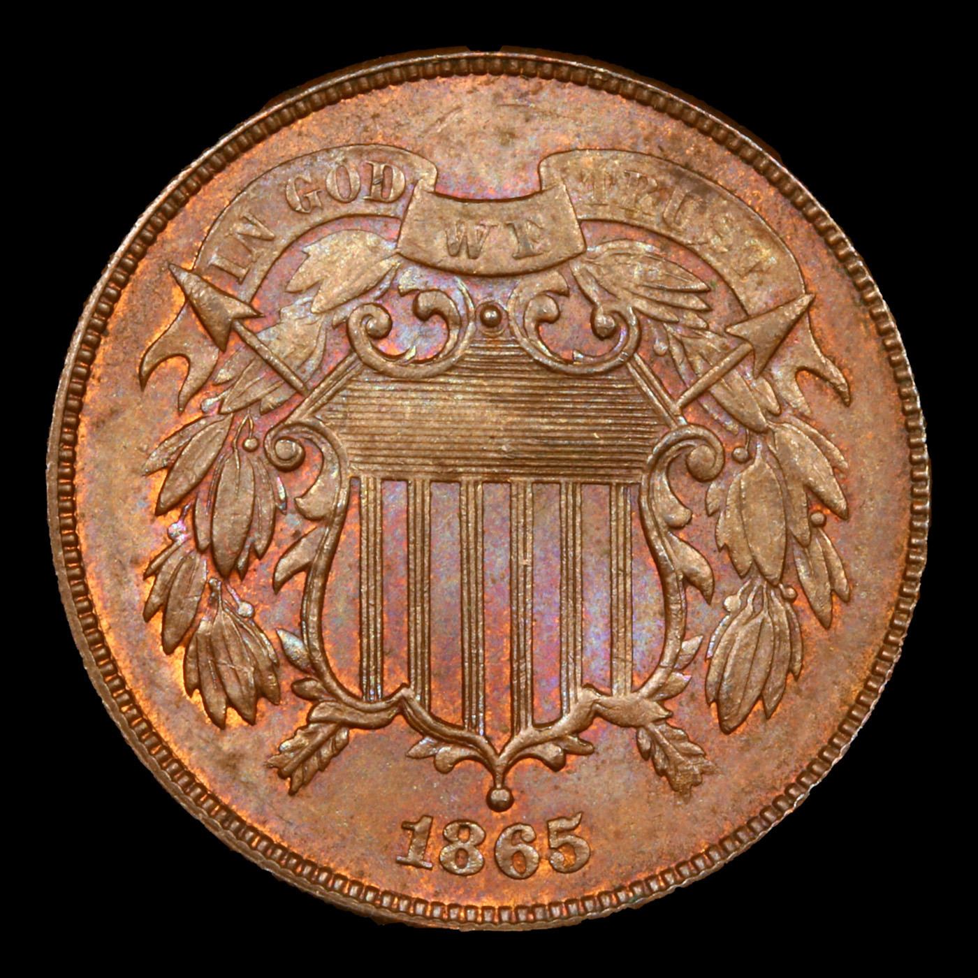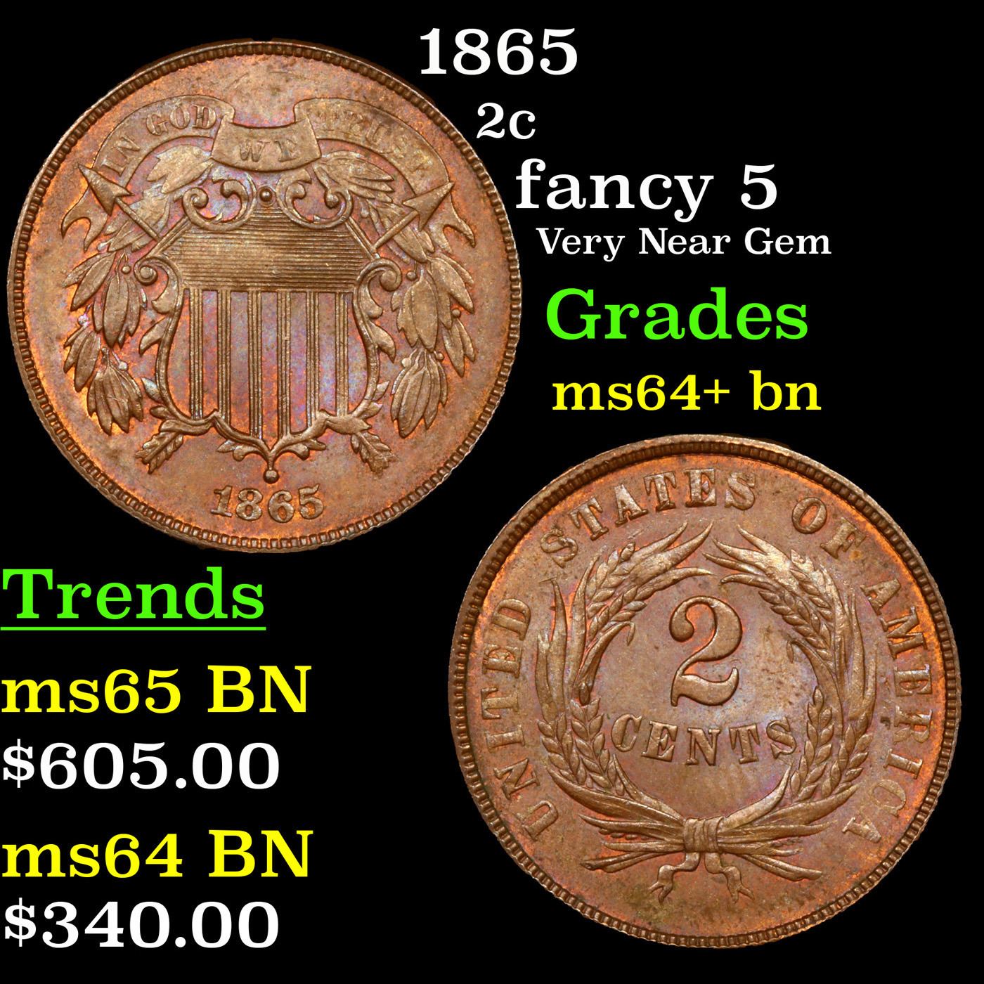 1865 Two Cent Piece 2c Grades Choice+ Unc BN.