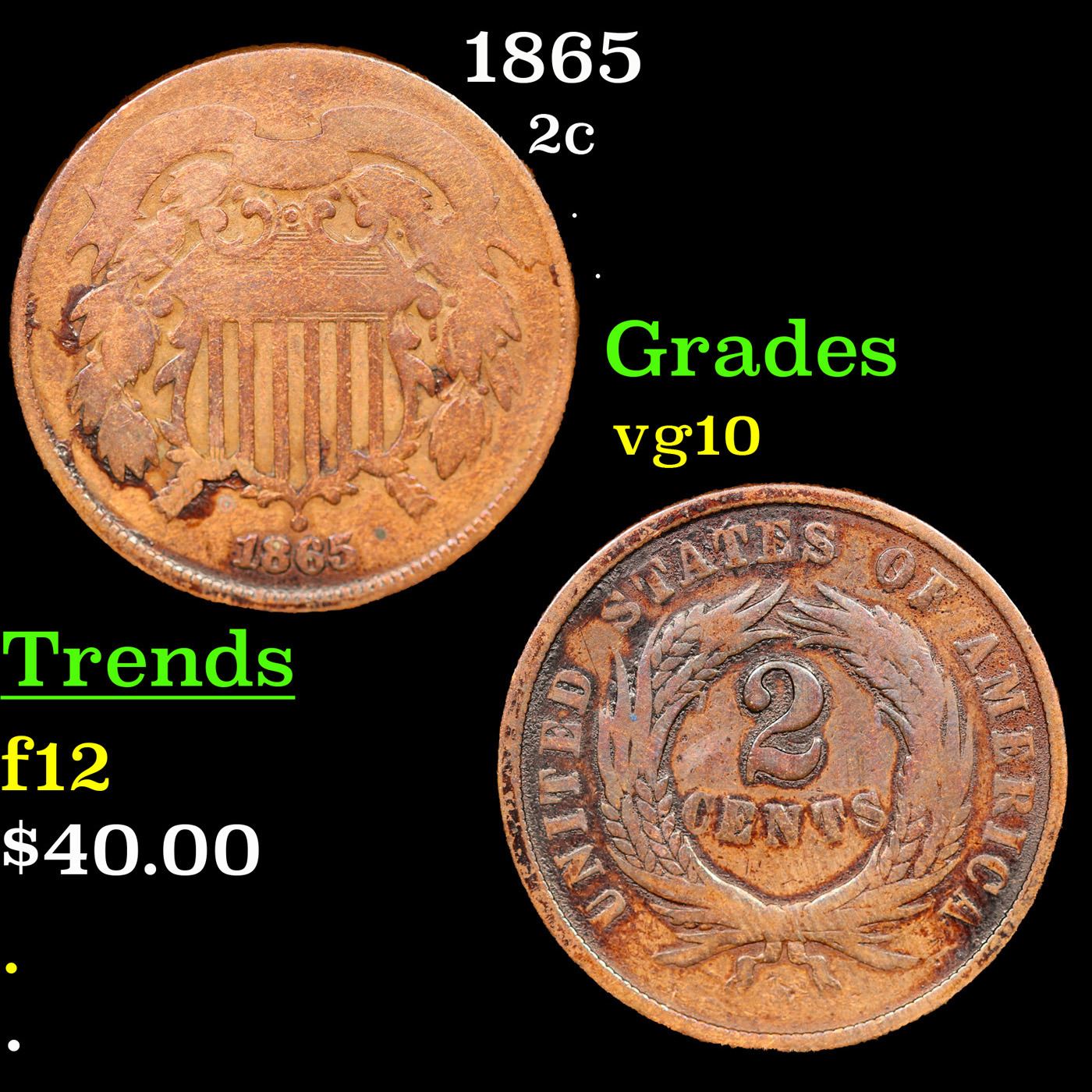 1865 Two Cent Piece 2c Grades vg+.
