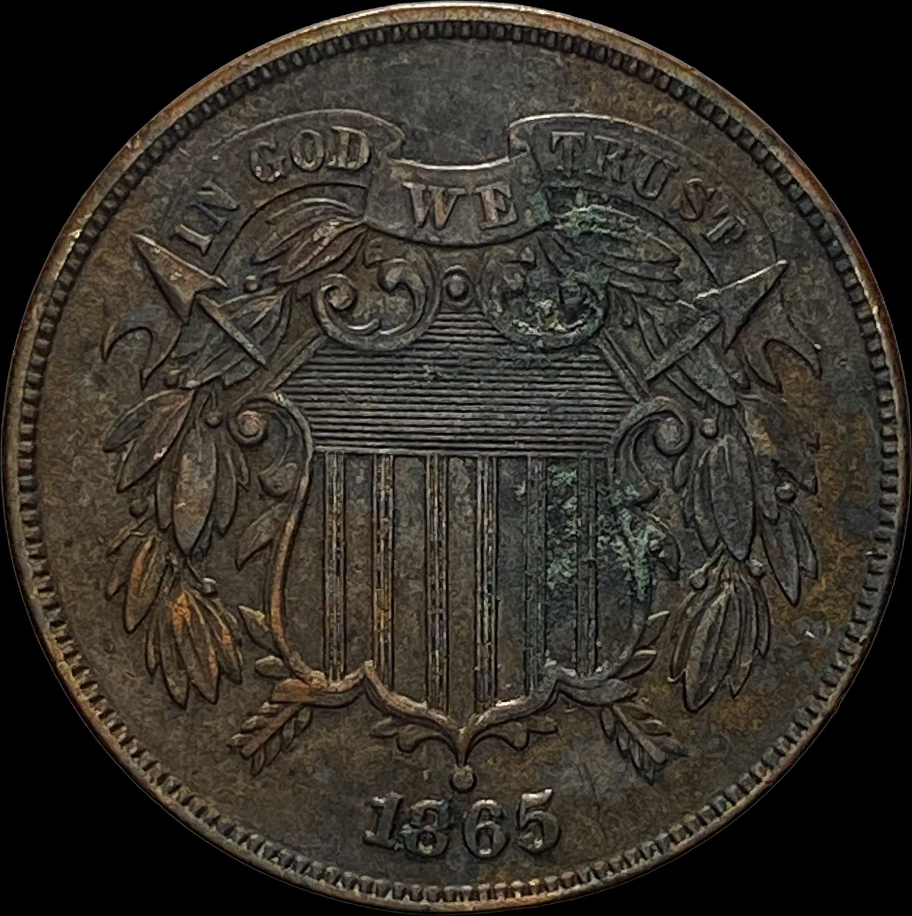 1865 Two-Cent Piece NEARLY UNCIRCULATED