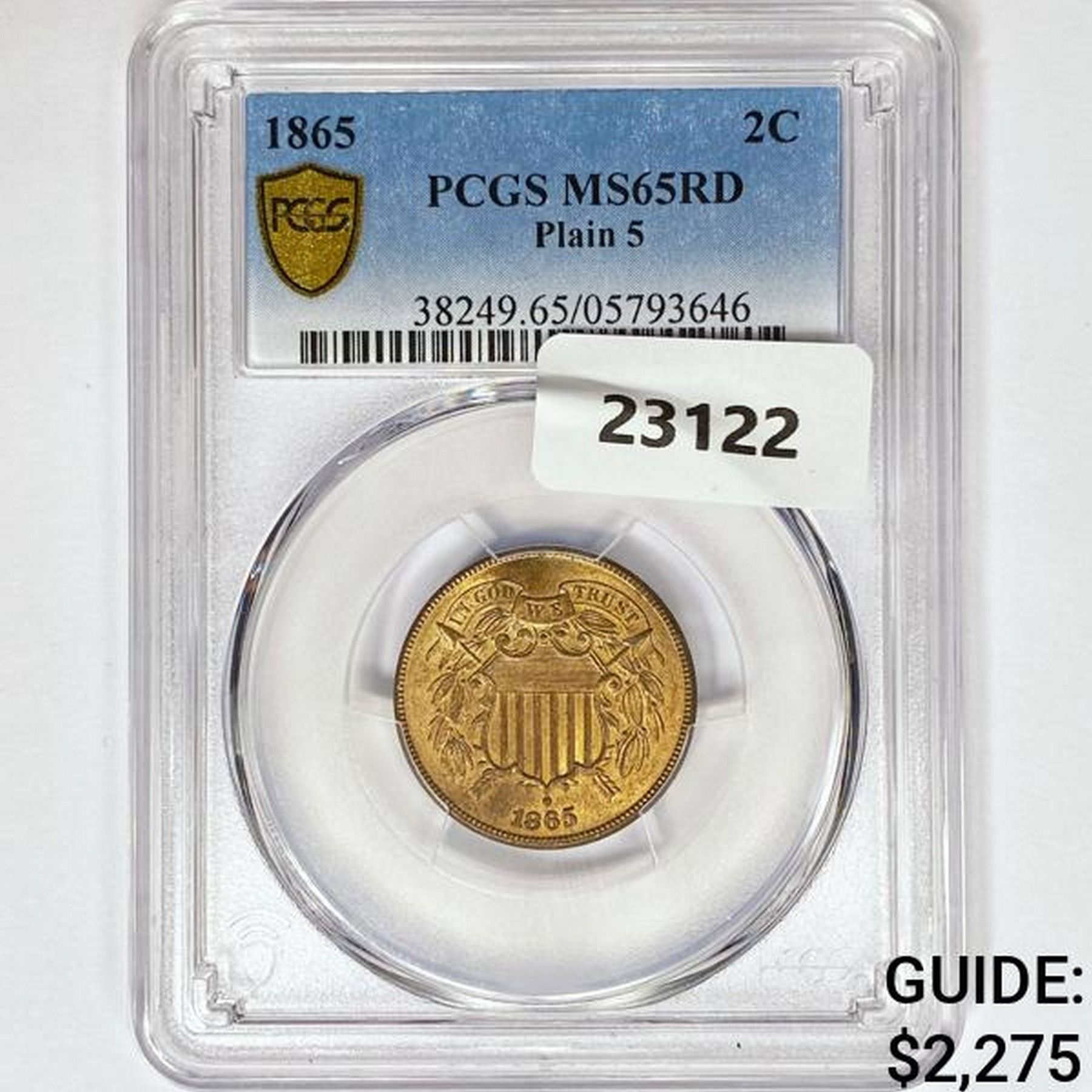 1865 Two Cent Piece PCGS MS65 RD, Plain 5